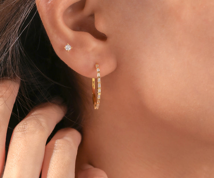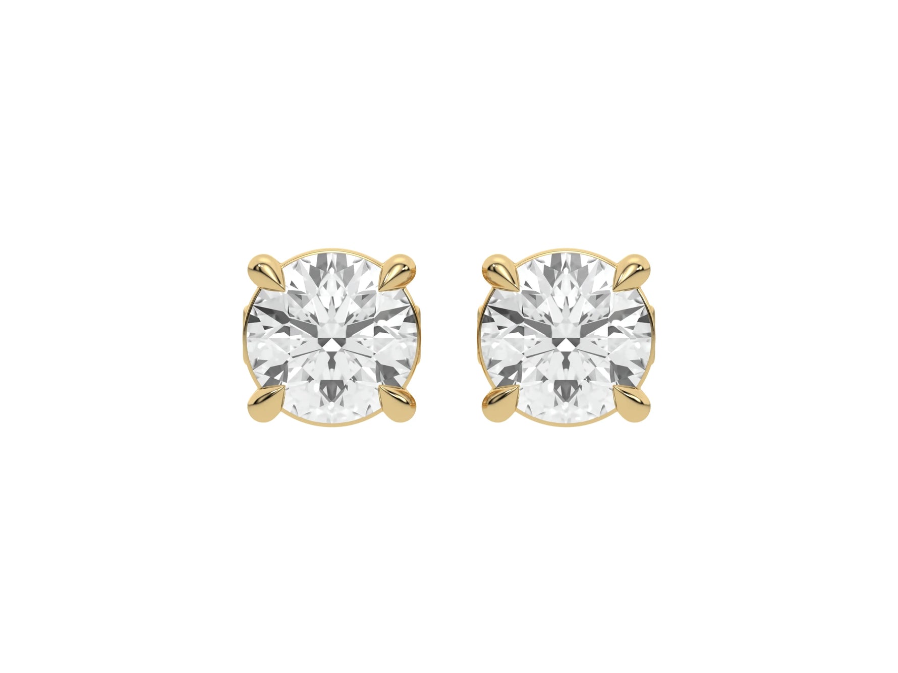 14k yellow gold Round cut Diamond studs set in a four prong setting