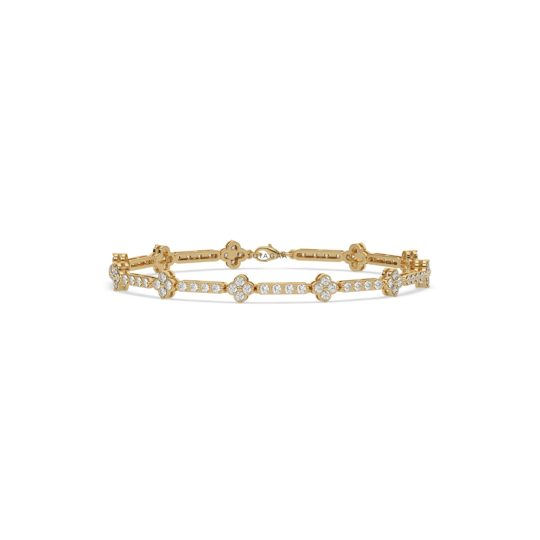 14K Yellow Gold Round Diamond Flower Tennis Bracelet