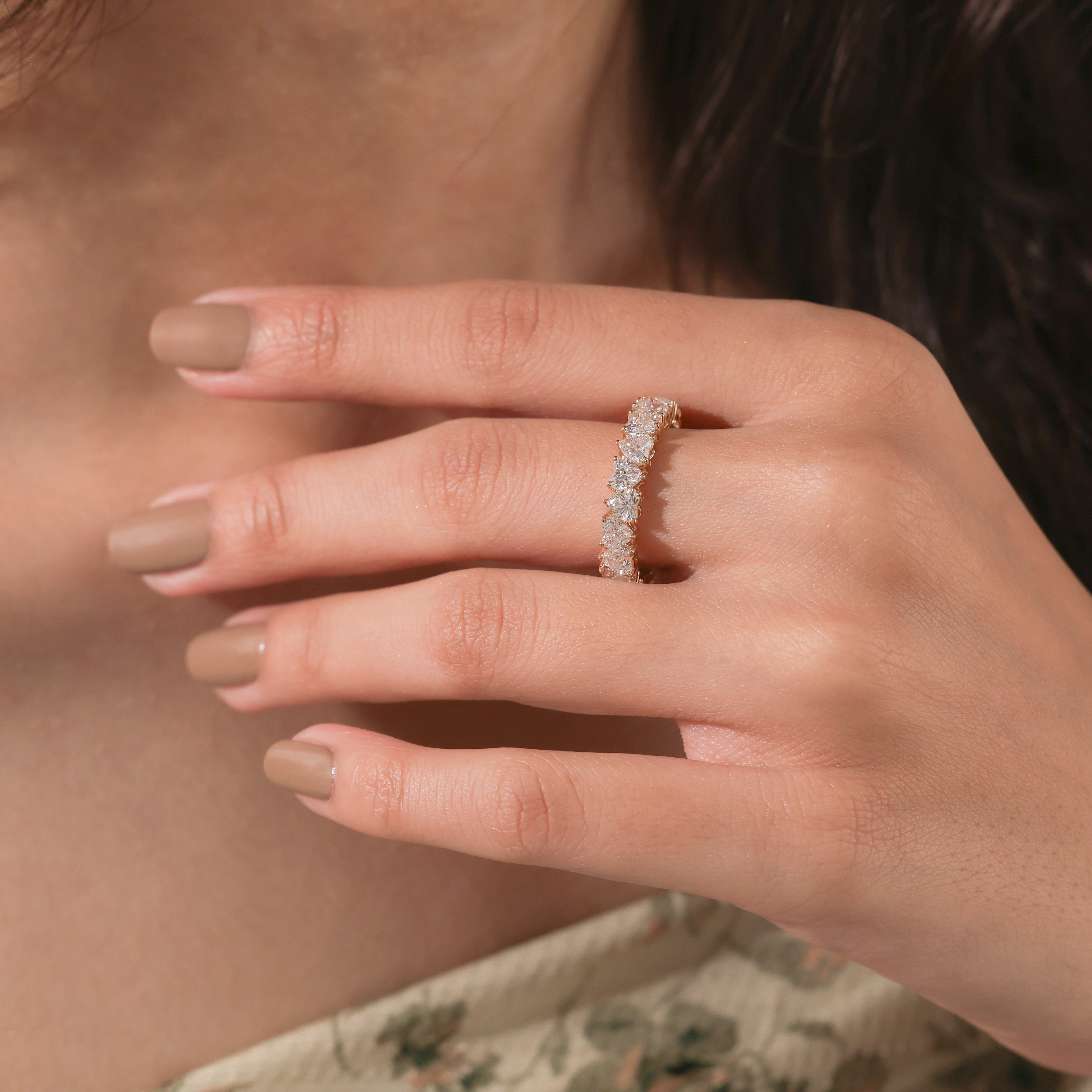 18K Yellow Gold Emerald Diamond Eternity Ring