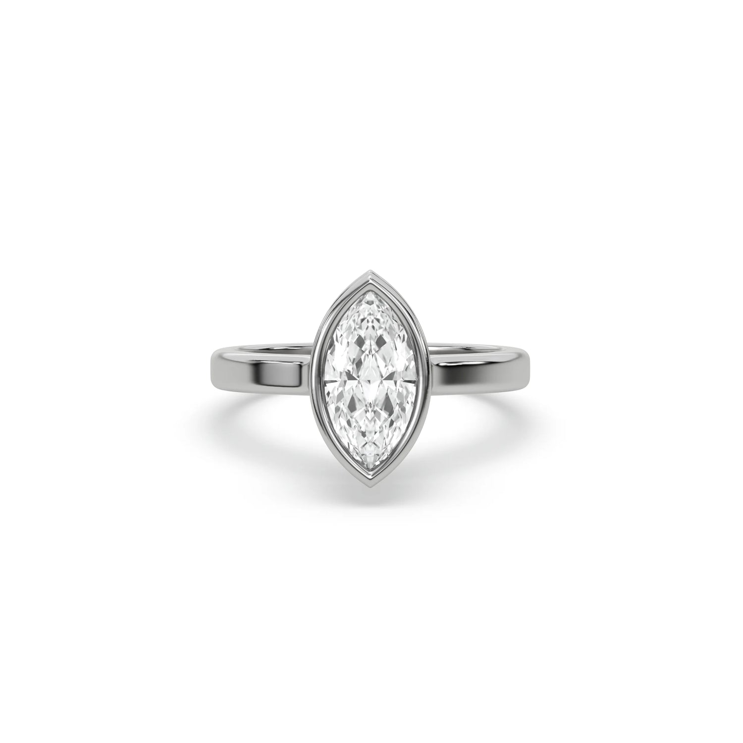 Marquise Diamond Bezel Engagement Ring is made with a marquise cut diamond set in a bezel setting on a pave diamond band made with round brilliant cut diamonds.