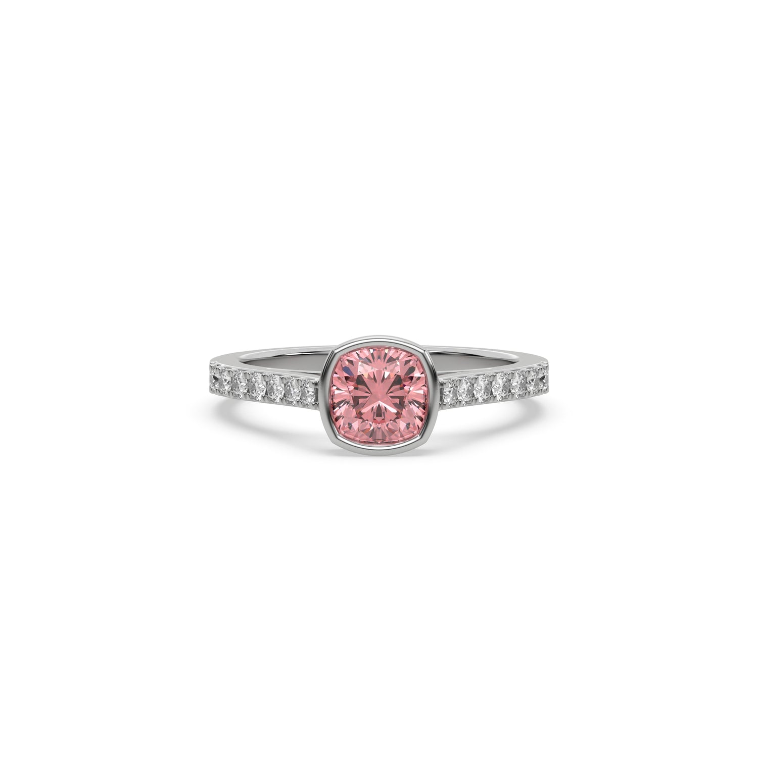 Fancy Pink Marquise Diamond Bezel Engagement Ring is made with a fancy Pink marquise cut diamond set in a bezel setting on a solid gold band.