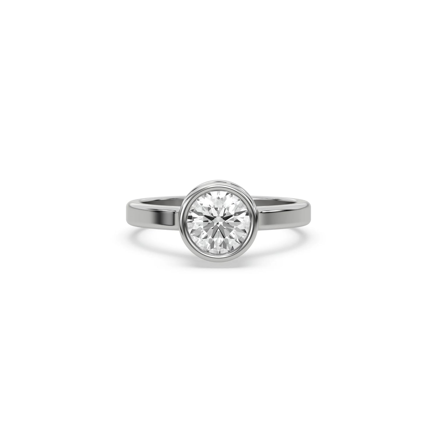 Round Diamond Bezel Engagement Ring is made with a round brilliant cut diamond set in a bezel setting on a pave diamond band made with round brilliant cut diamonds.