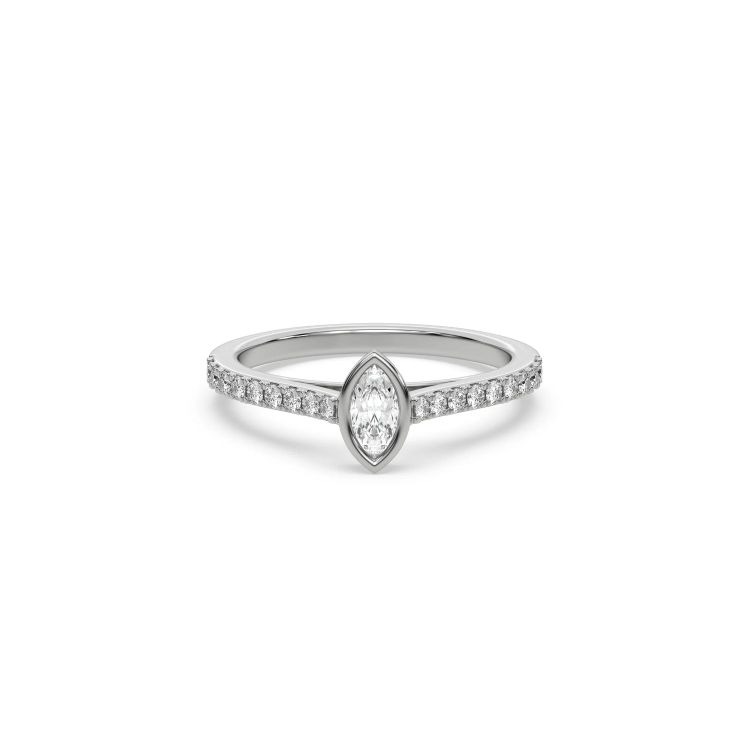 Marquise Diamond Bezel Engagement Ring is made with a marquise cut diamond set in a bezel setting on a solid gold band.