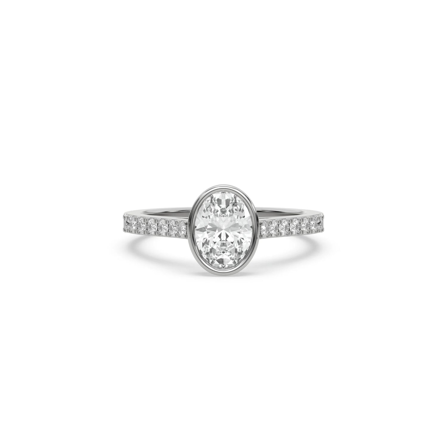 Oval Diamond Bezel Engagement Ring is made with an oval cut diamond set in a bezel setting on a solid gold band.