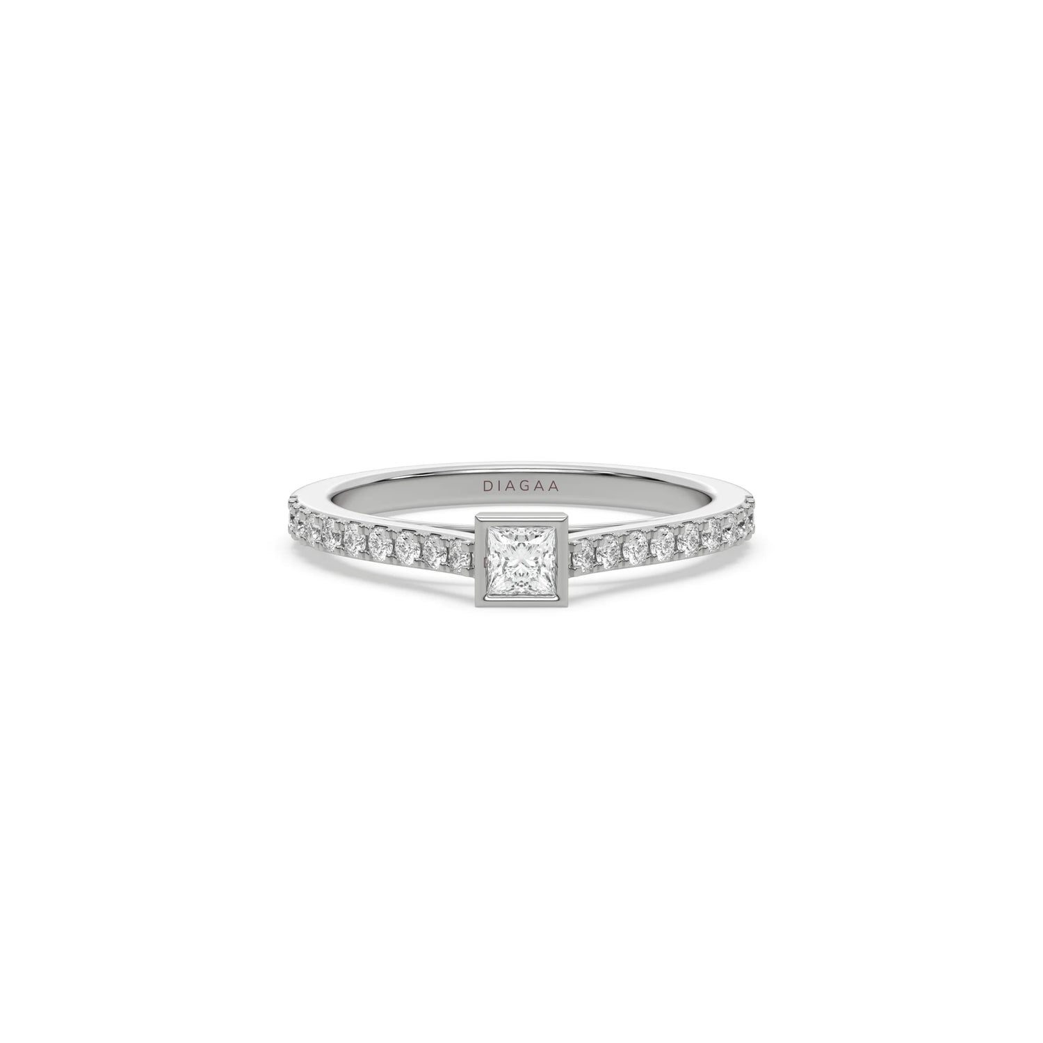 Princess Diamond Bezel Engagement Ring is made with a princess cut diamond set in a bezel setting on a solid gold band.
