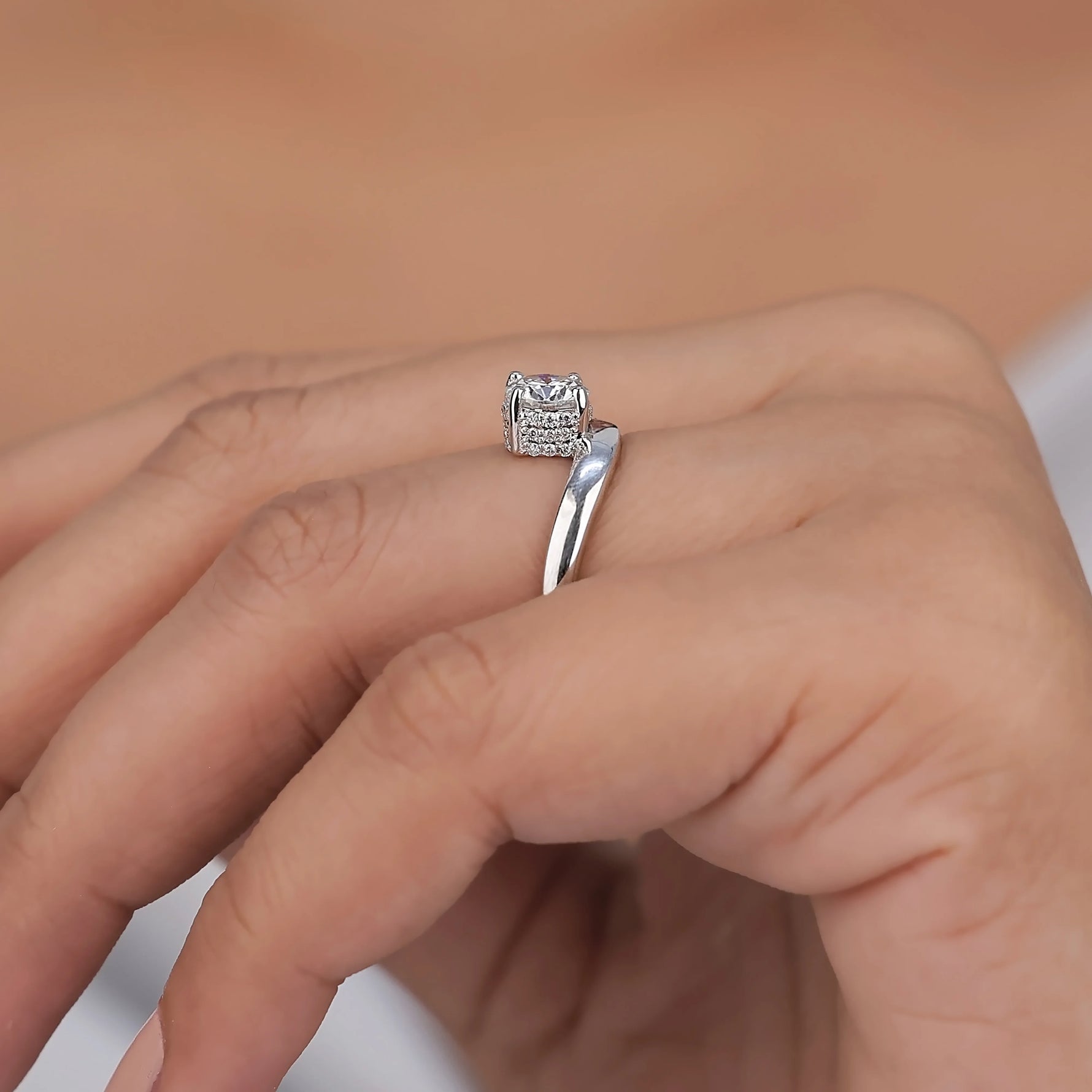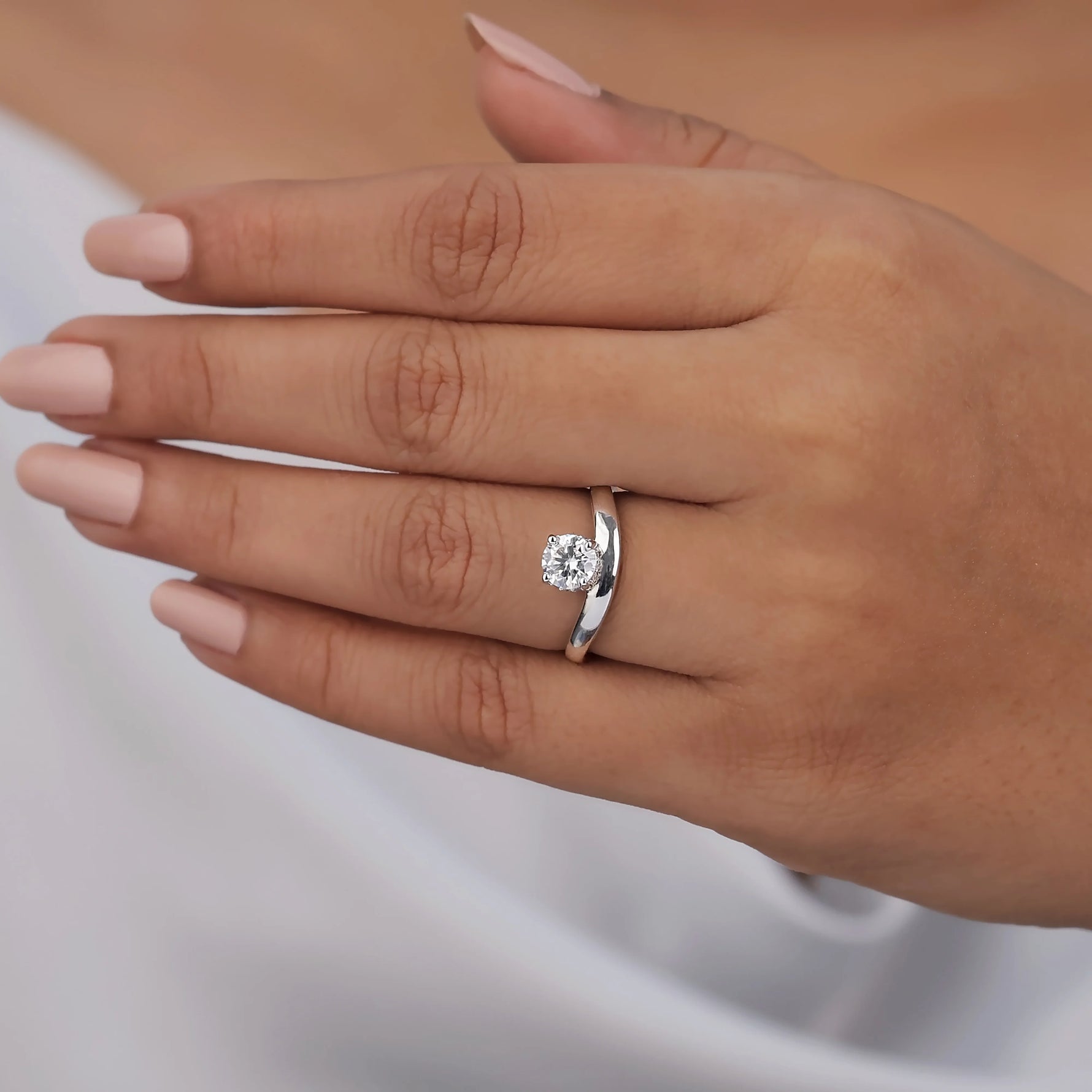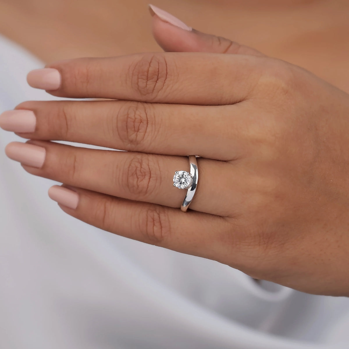 Curved Round Lab Diamond Solitaire Ring