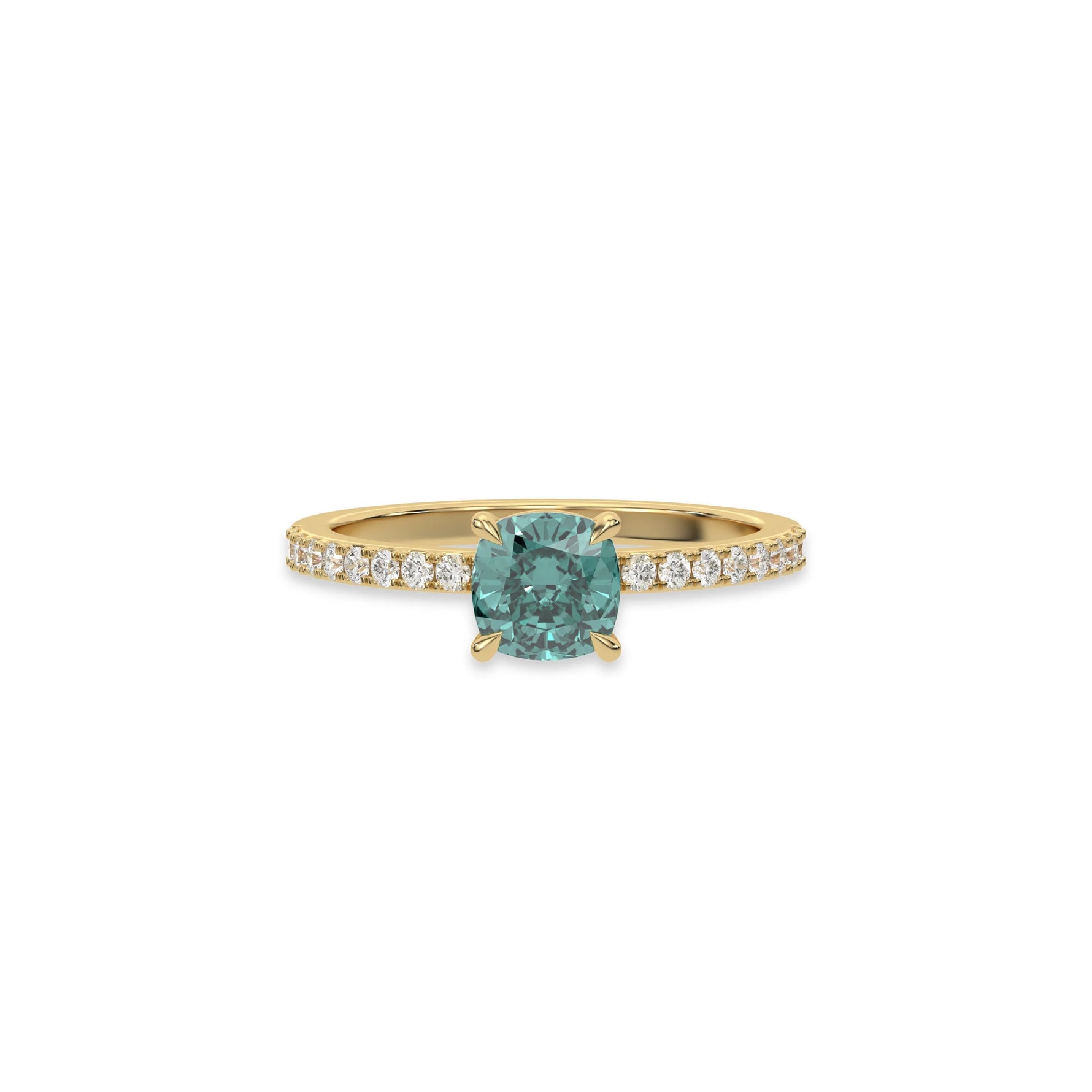 14K Yellow Gold Fancy Green Cushion Cut Solitaire Diamond Engagement Ring