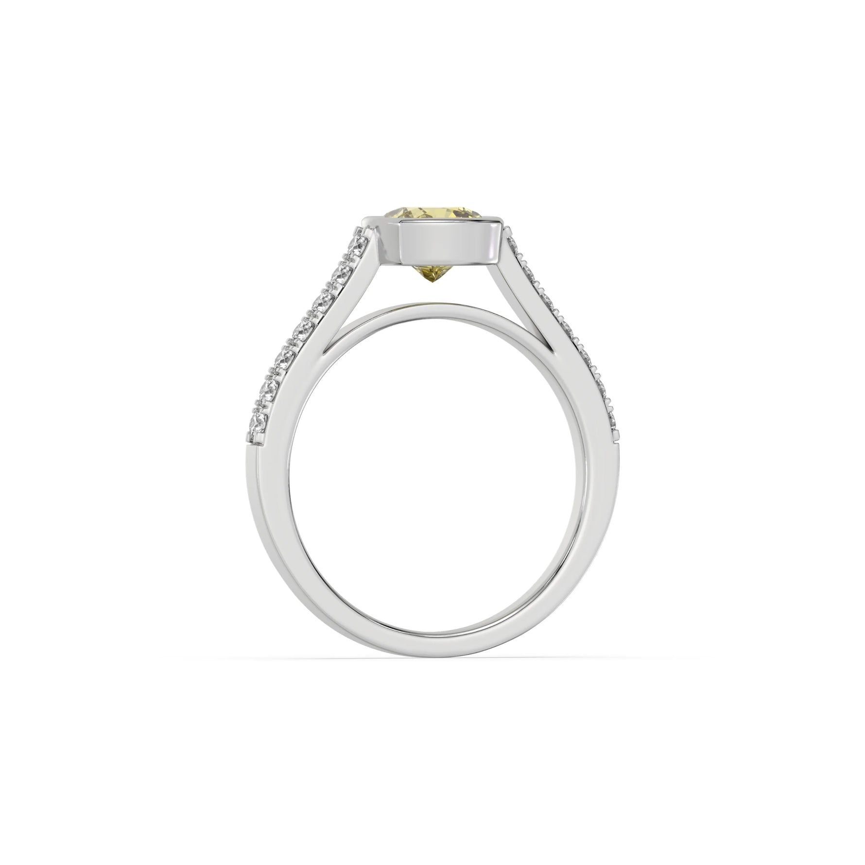3 CT Fancy Yellow Diamond Cushion Solitaire Bezel Engagement Ring
