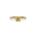 18K Yellow Gold Fancy Yellow Cushion Cut Solitaire Diamond Engagement Ring