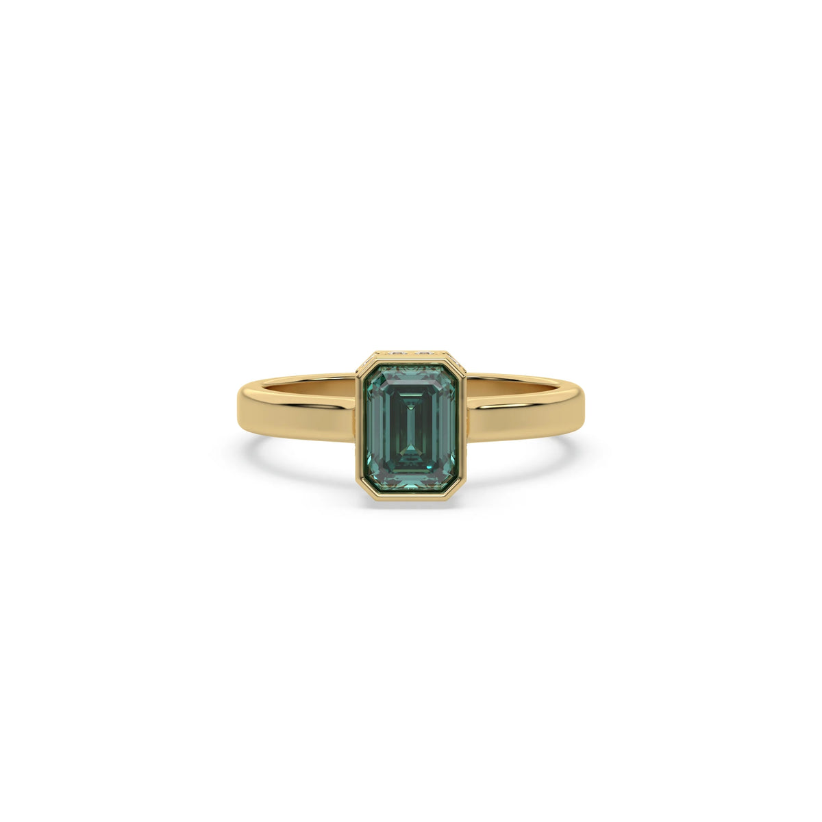 14K Yellow Gold Fancy Green Emerald Solitaire Engagement Ring