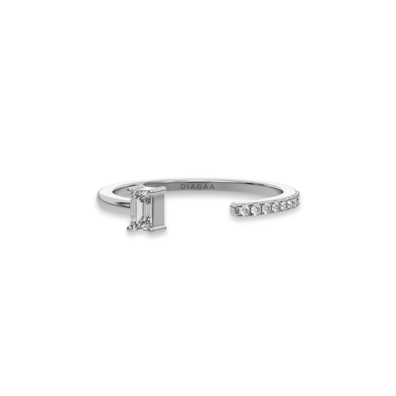 Open Emerald Diamond ring features an open gap in the center. One side with a 0.15 CT emerald solitaire in a four prong setting, while the other side sparkles with 9 round brilliant-cut diamonds set in a micro-pave setting, creating a unique and eye-catching design.