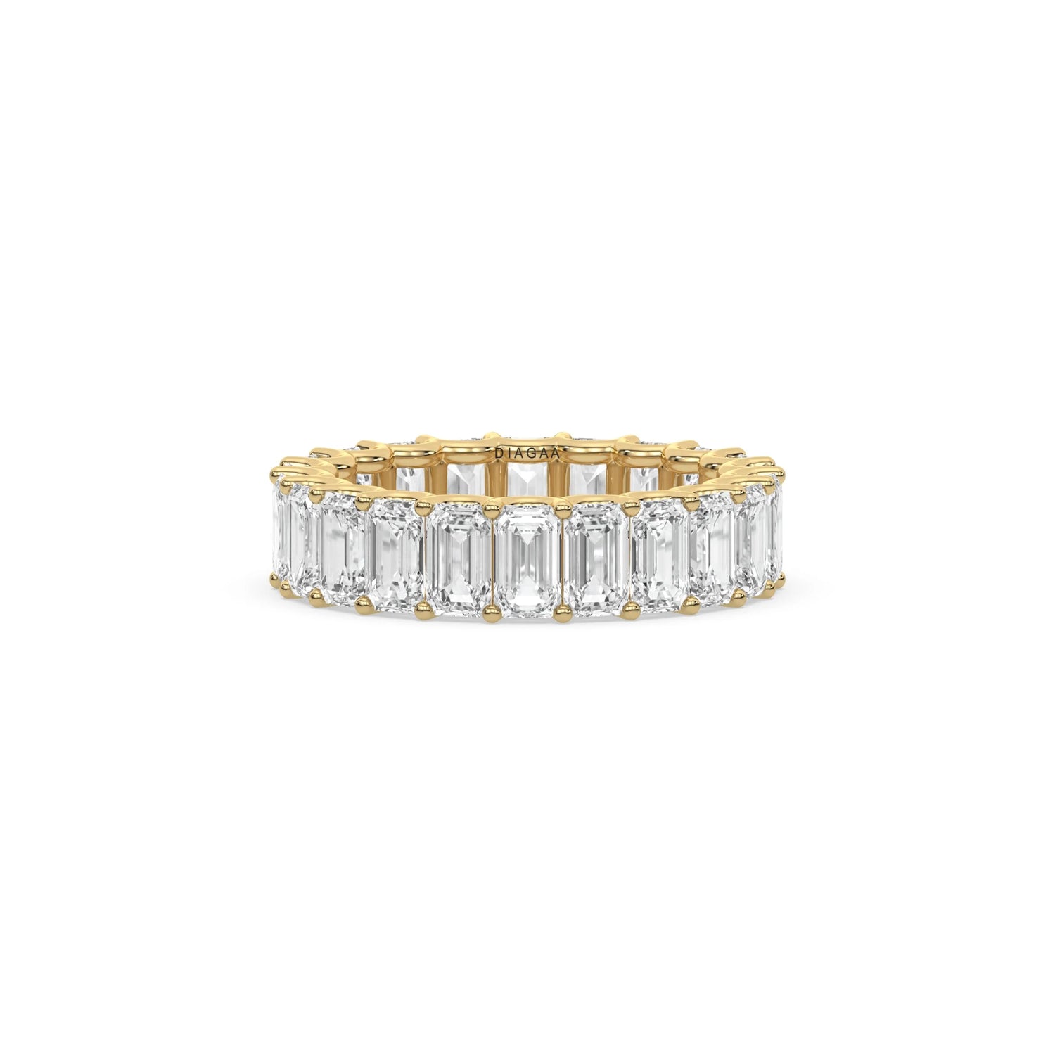 This 4 mm full eternity band features approximately 5.10 carats of emerald cut lab grown diamonds set in prong setting.