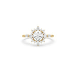 This halo diamond engagement ring is more than just jewelry—it’s a statement of love and individuality. The snowflake-inspired halo makes it unique, while the classic gold band ensures it will never go out of style. Pair it with a layered necklace from our collection to complete your bridal look. Celebrate forever with a piece that blends elegance, meaning, and sparkle—making it the perfect choice for women who want a ring that is both timeless and unforgettable.