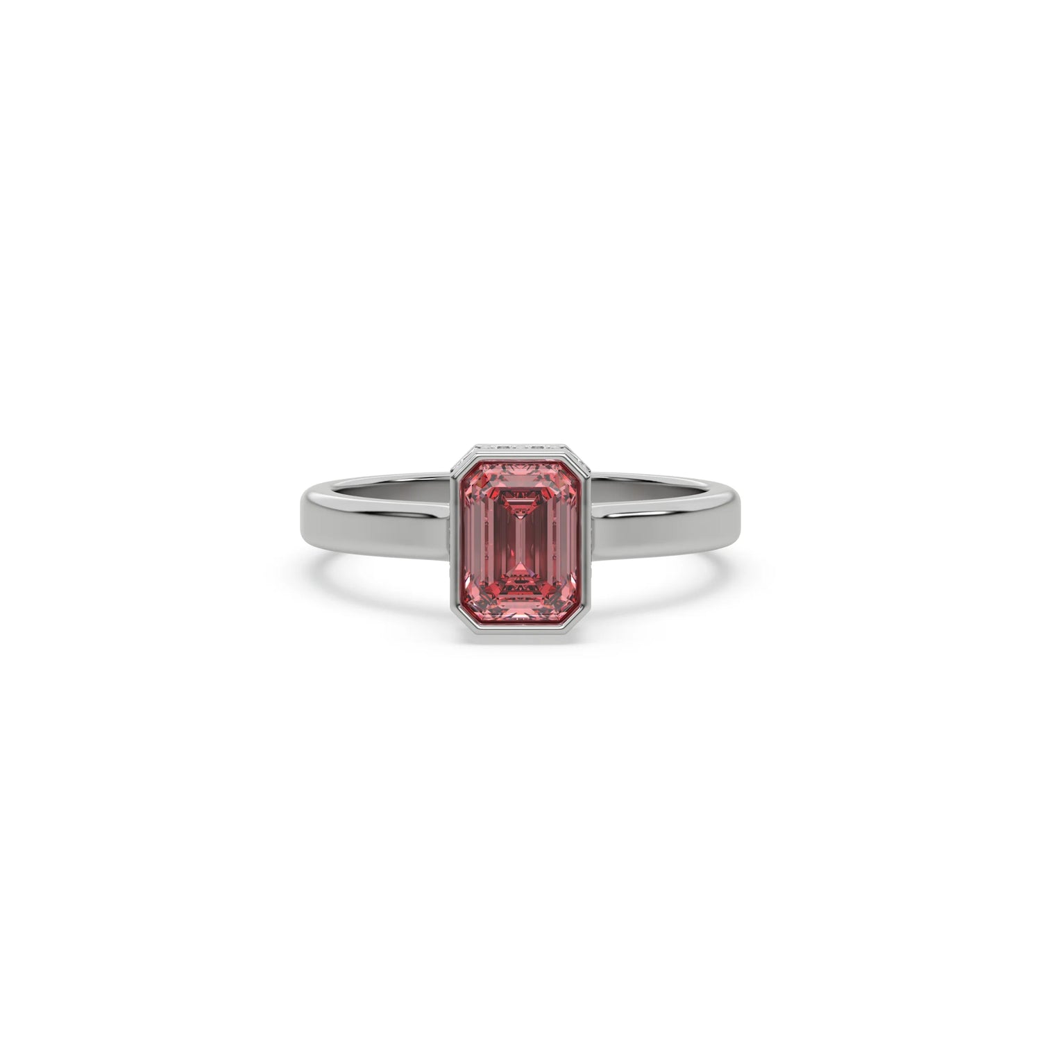 Unit price perFancy Pink Emerald Diamond Hidden Halo Engagement Ring is made with an fancy Pink emerald cut diamond set in a bezel setting with a hidden-halo of round diamonds all set in a pave setting on a solid gold band.