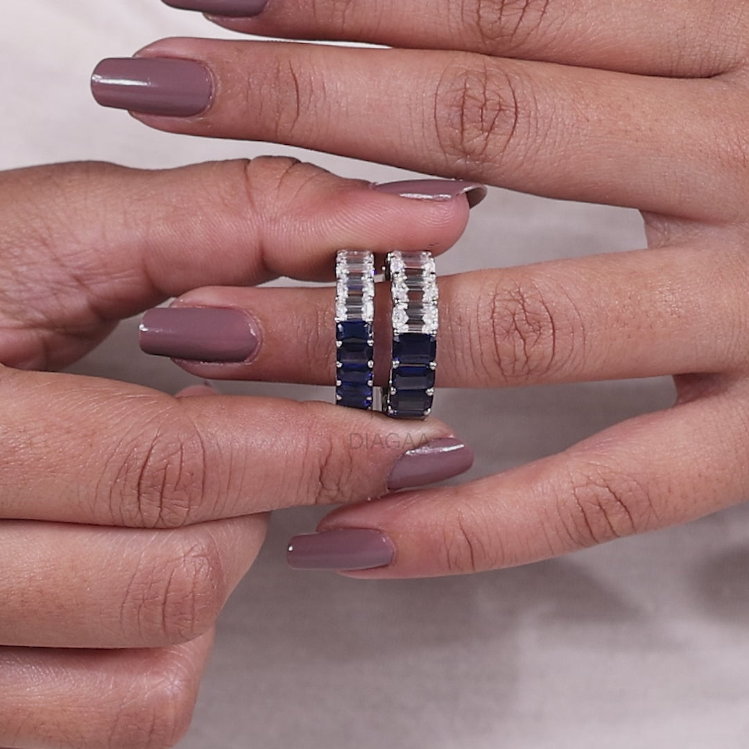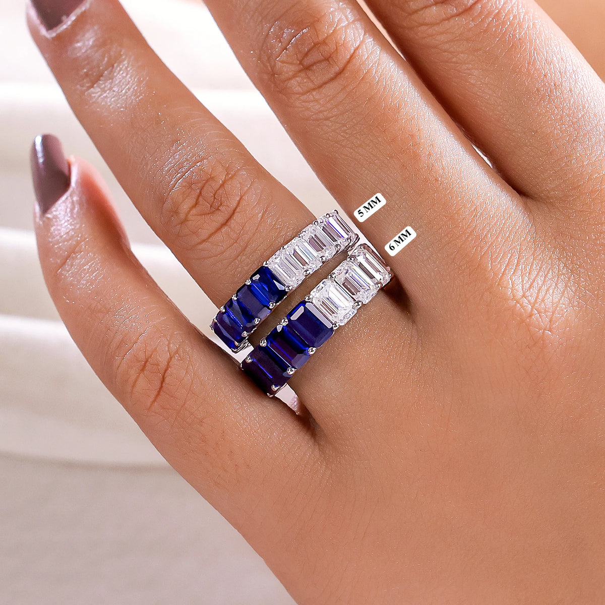 4 MM Emerald Cut Lab Sapphire and Lab Grown Diamond Eternity Band
