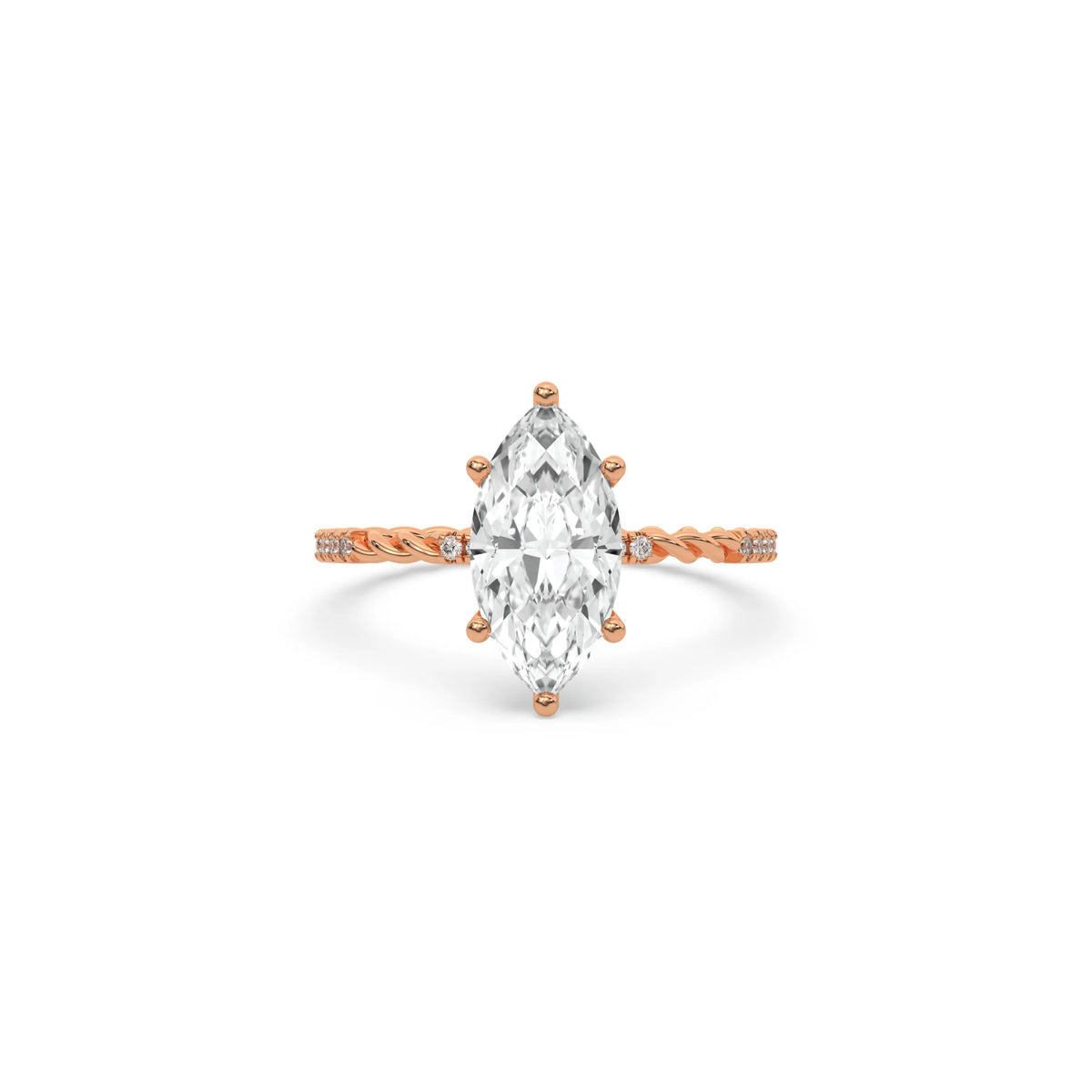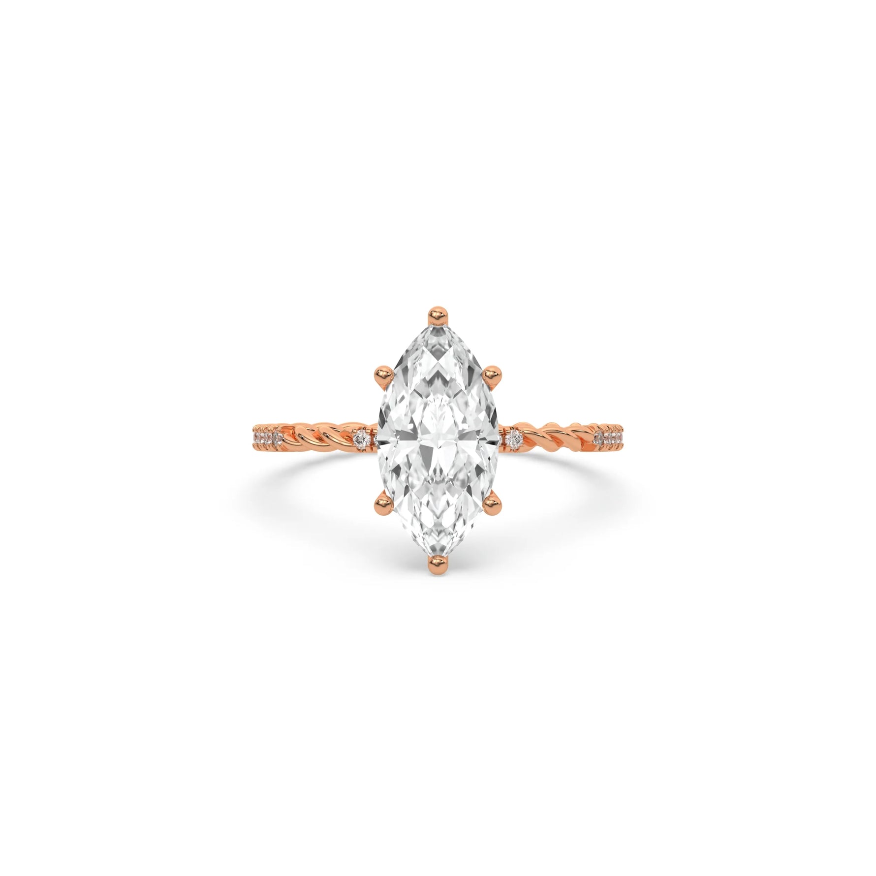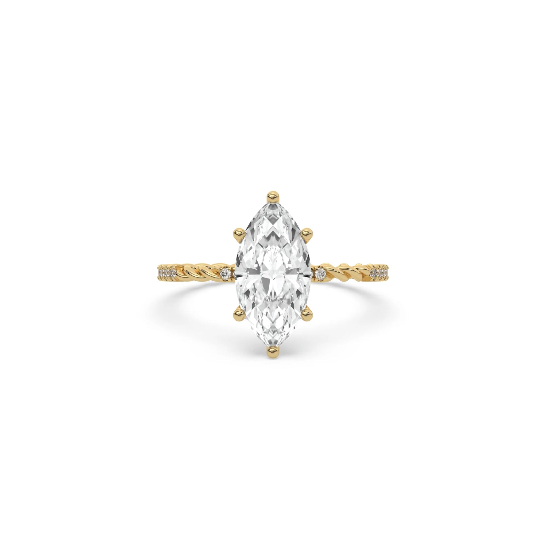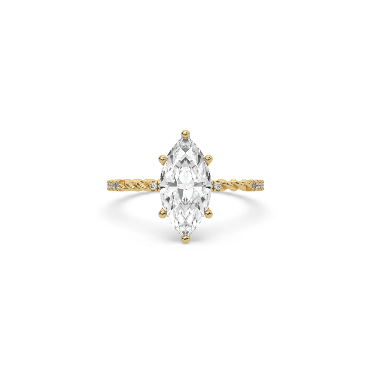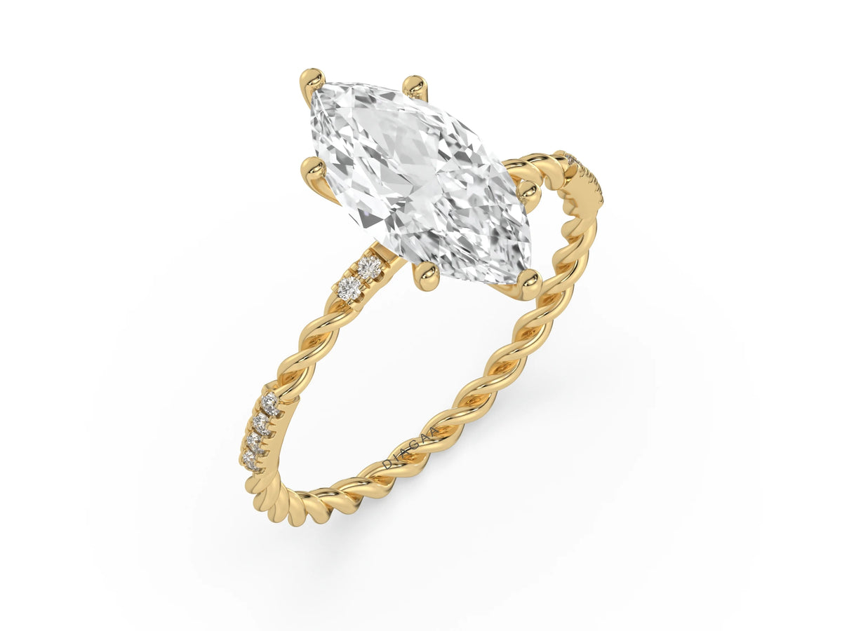 twist gold design that gracefully intertwines with a straight line of round diamonds. This seamless fusion of modern and classic details creates an engagement ring that is both versatile and unforgettable. Perfect for women who want to express their personal style, this ring embodies the charm of unique engagement rings while offering the brilliance of traditional craftsmanship.