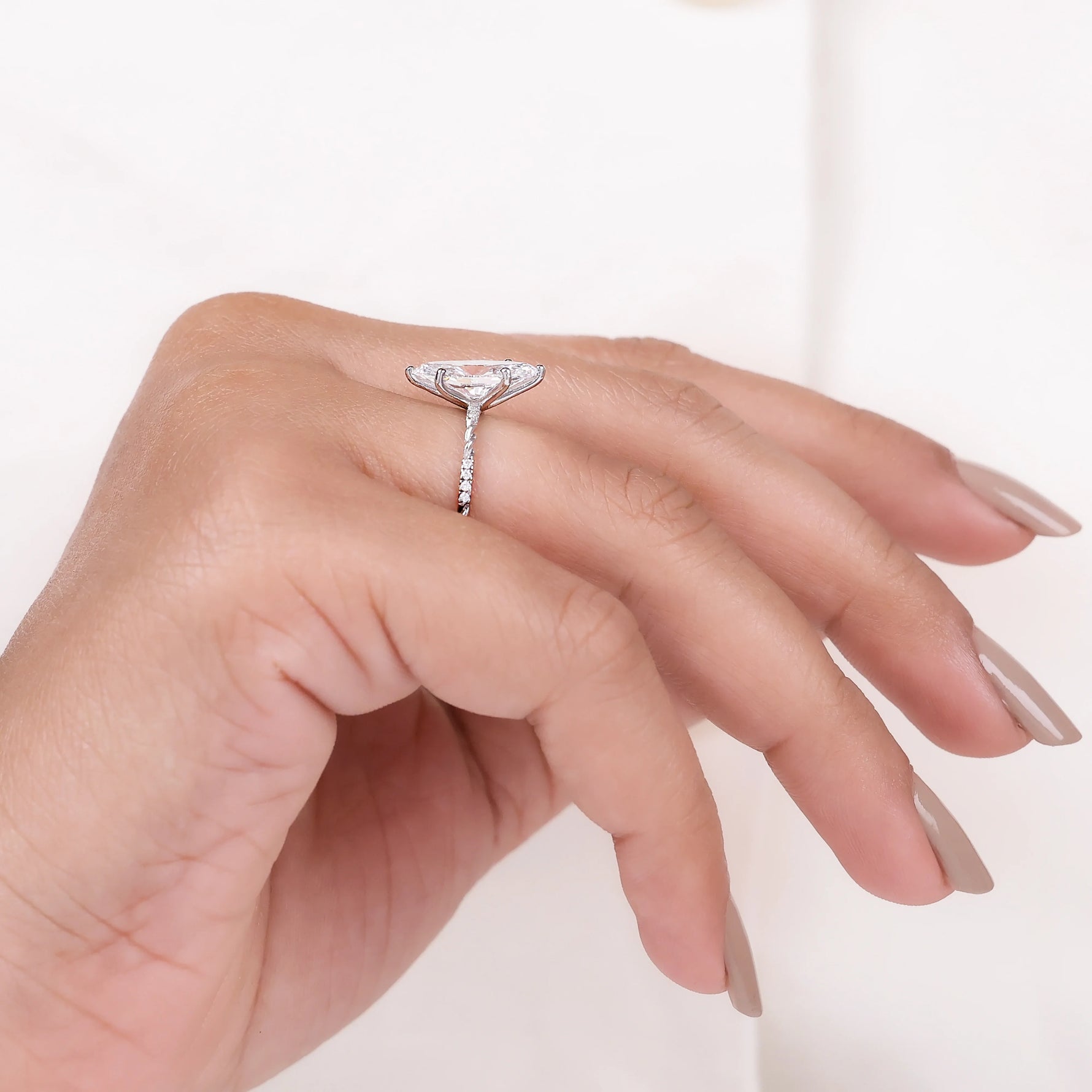 Celebrate love with timeless brilliance through this Marquise Engagement Ring, designed to stand out with sophistication and elegance. The focal marquise cut diamond sits securely in a six-prong setting, maximizing its length and sparkle while giving the illusion of a slender, elongated finger. Known for its graceful shape, the marquise diamond has long been admired as a symbol of romance and individuality.