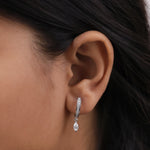 Dangling Marquise Diamond Hoop Earrings handmade with round brilliant-cut diamonds in pave setting and a marquise solitaire hanging at the bottom.