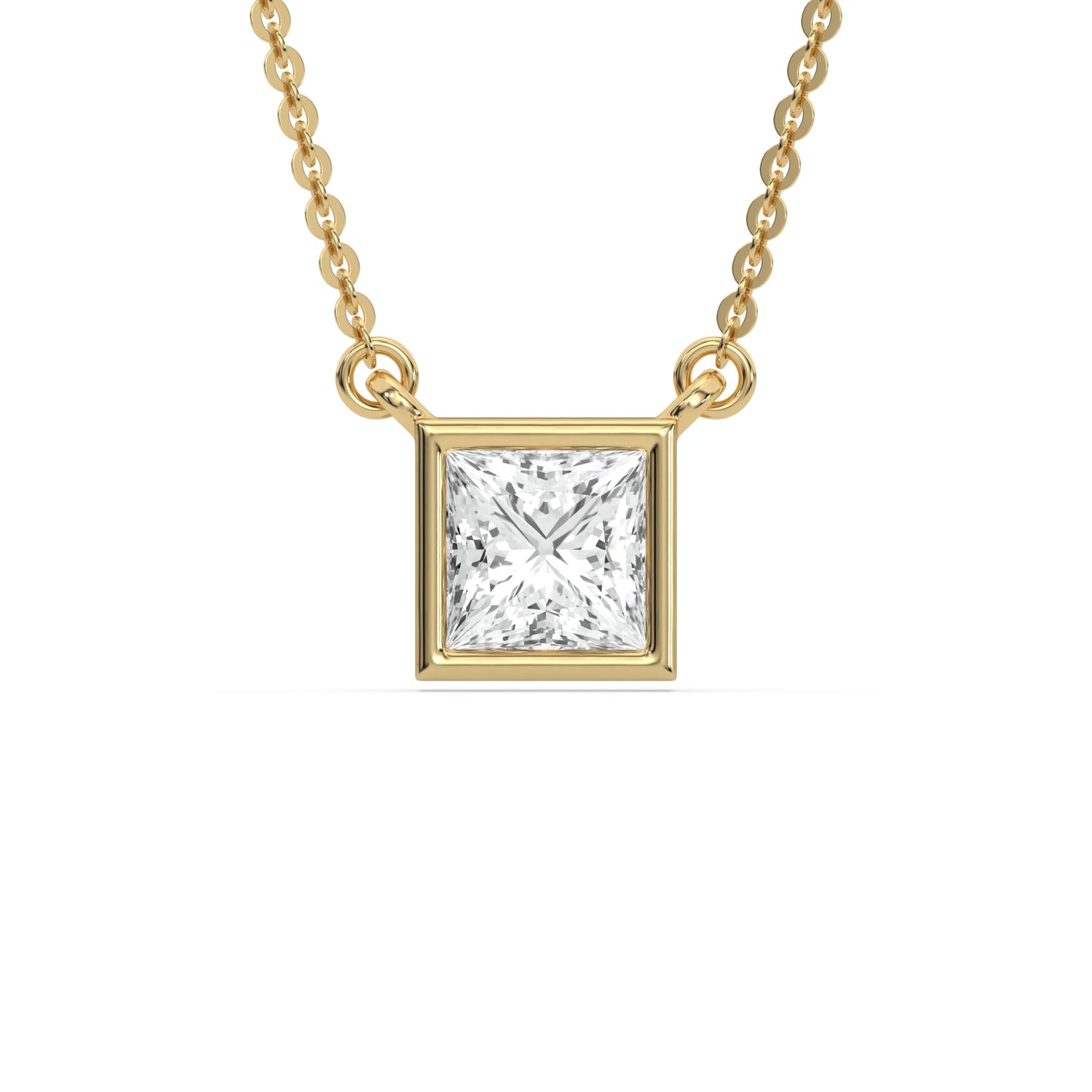 18K Yellow Gold Princess Solitaire Diamond Necklace