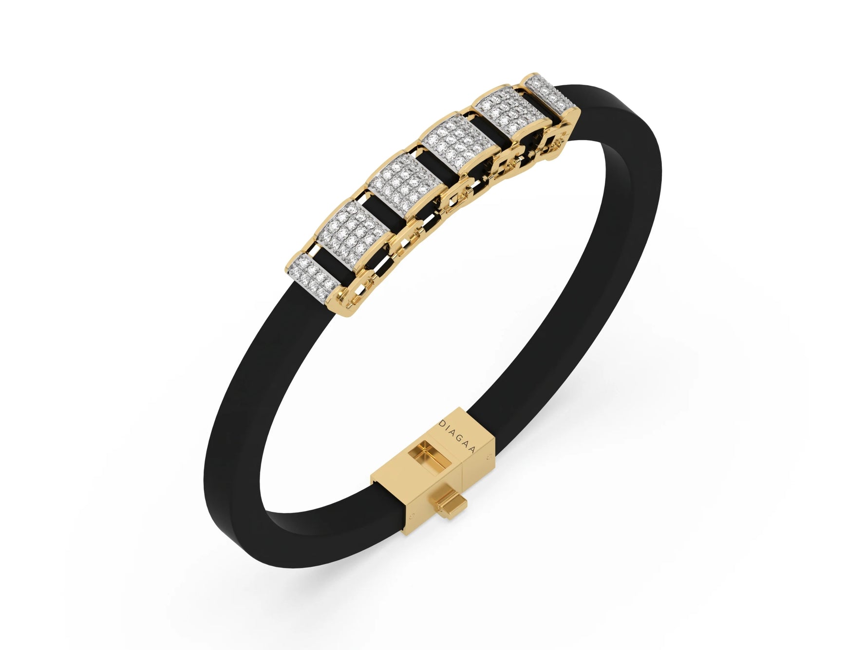 0.95 CT Natural Diamond Square Clusters Rubber Bracelet