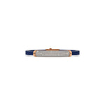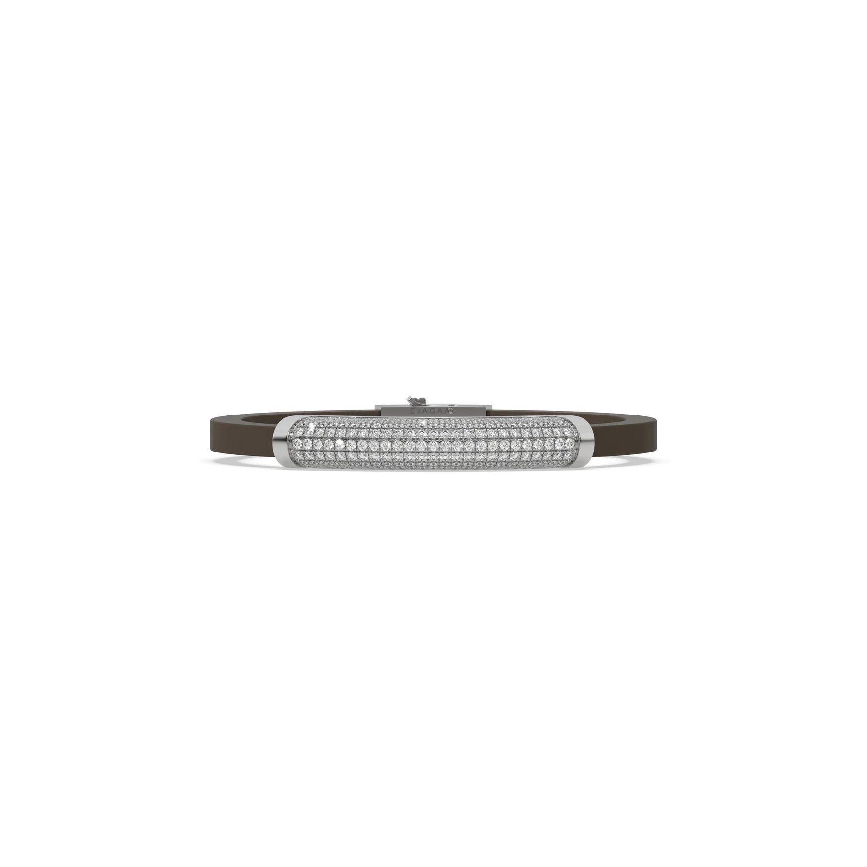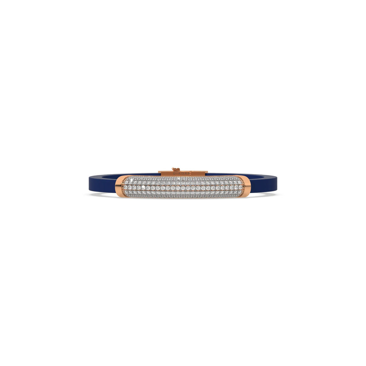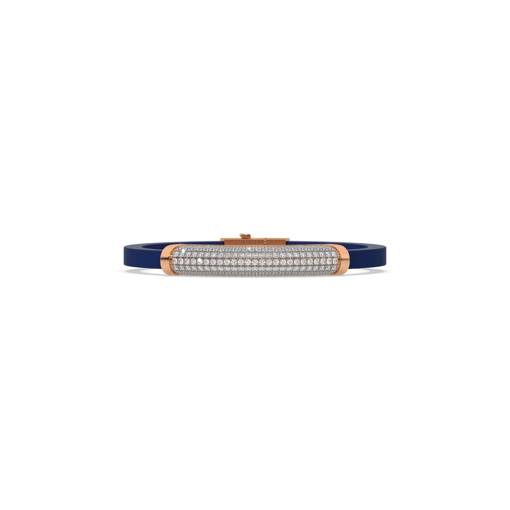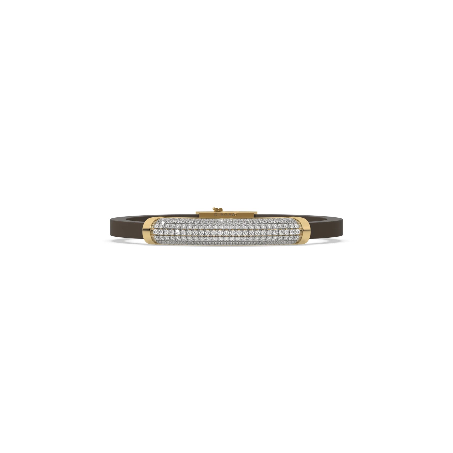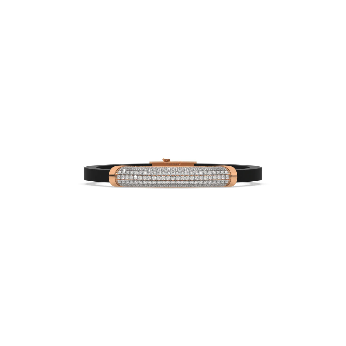 Curved diamond rubber bracelet features 3.90 CT of round cut diamonds set in a prong setting. Personalize your bracelet by choosing your preferred rubber color (black, brown, or blue) and gold type, available in either 14K or 18K gold.