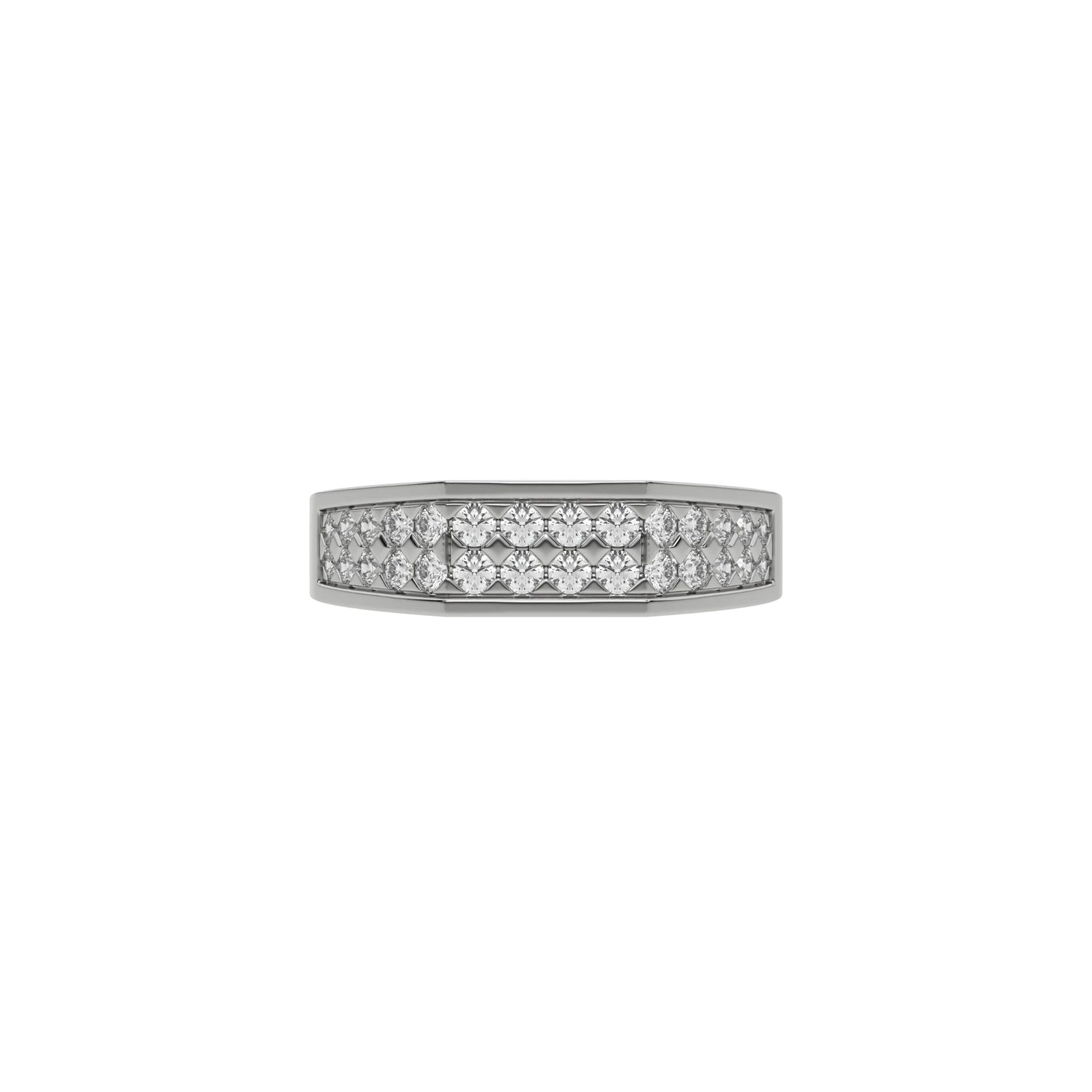 Men's dual row diamond ring, features two rows of round brilliant-cut diamonds and set in a shared prong setting.