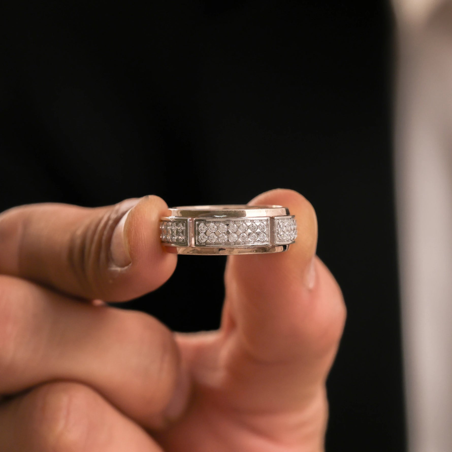 18K White Gold Mens Two Row Diamond Ring