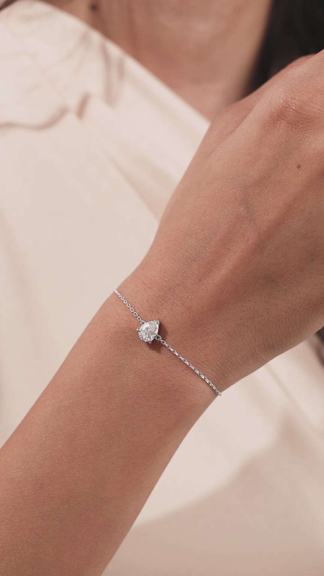 18K White Gold Pear Solitaire Diamond Bracelet