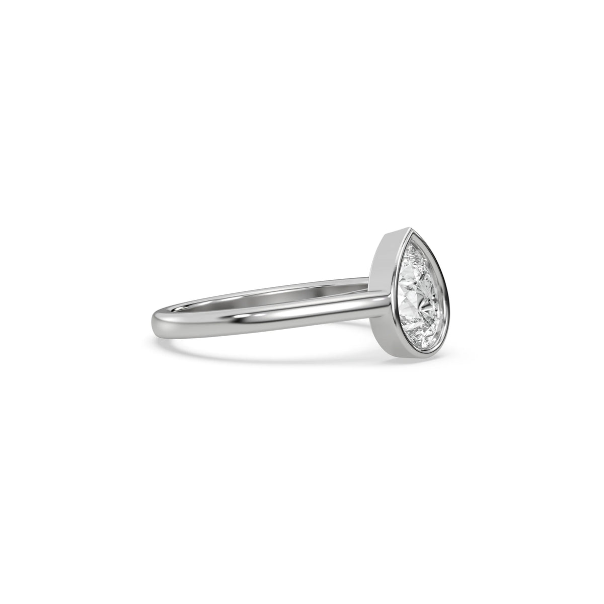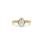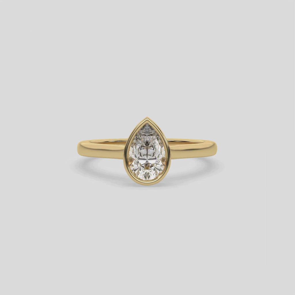 Pear Diamond Bezel Engagement Ring is made with a pear cut diamond set in a bezel setting on a solid gold band.