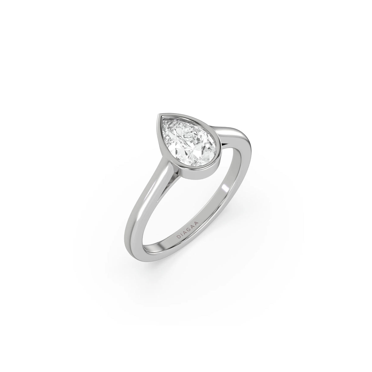 1 CT Natural Diamond Pear Shaped Bezel Engagement Ring