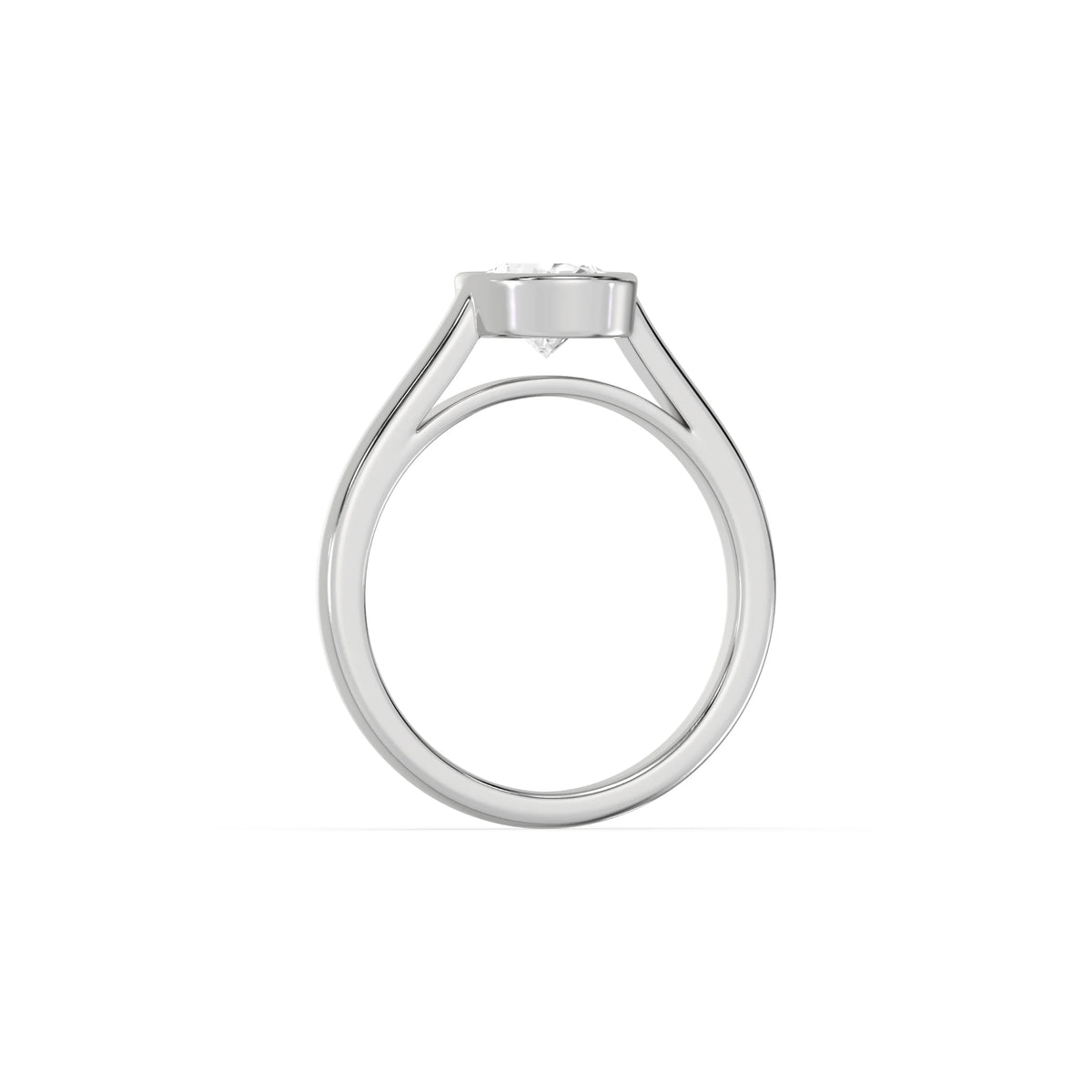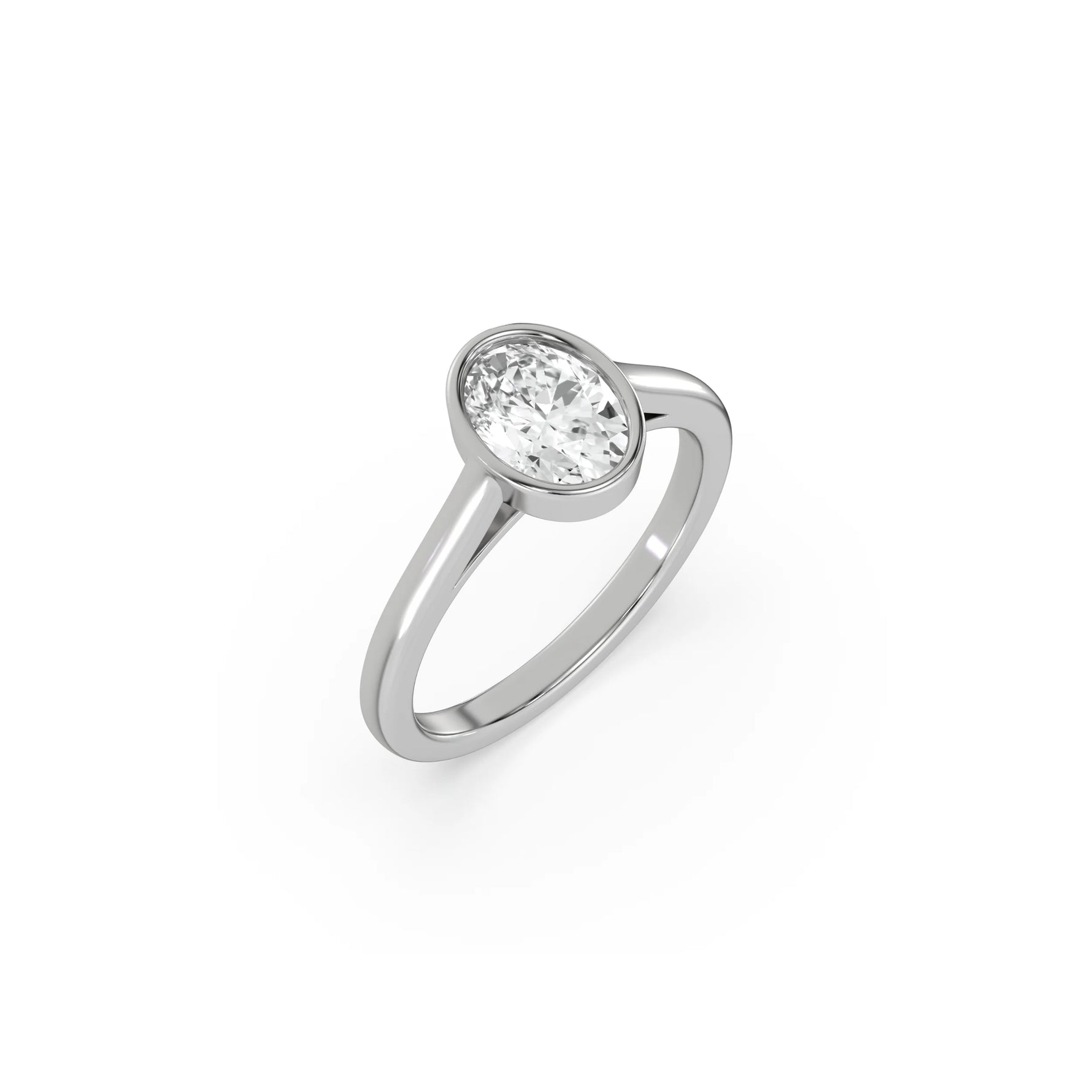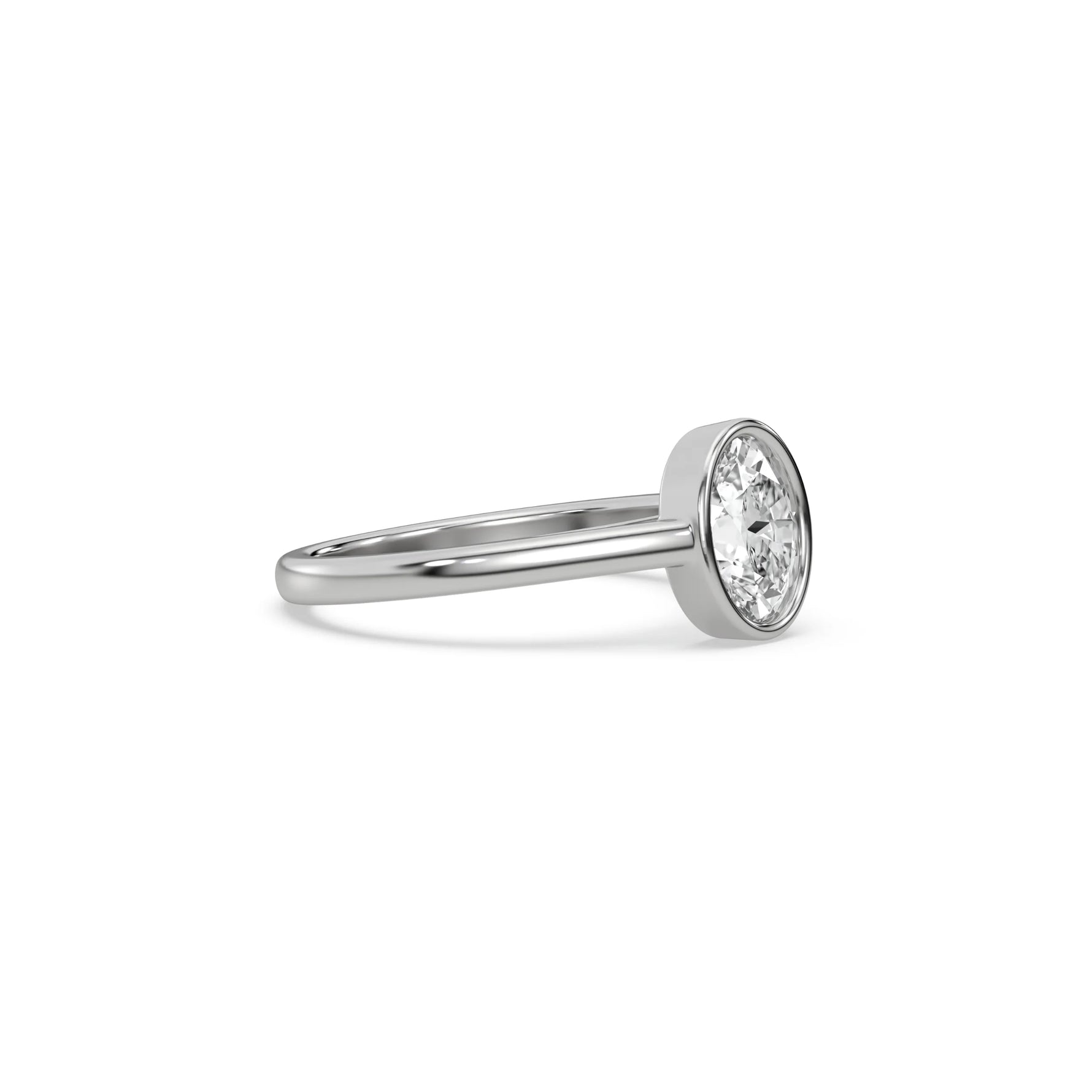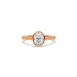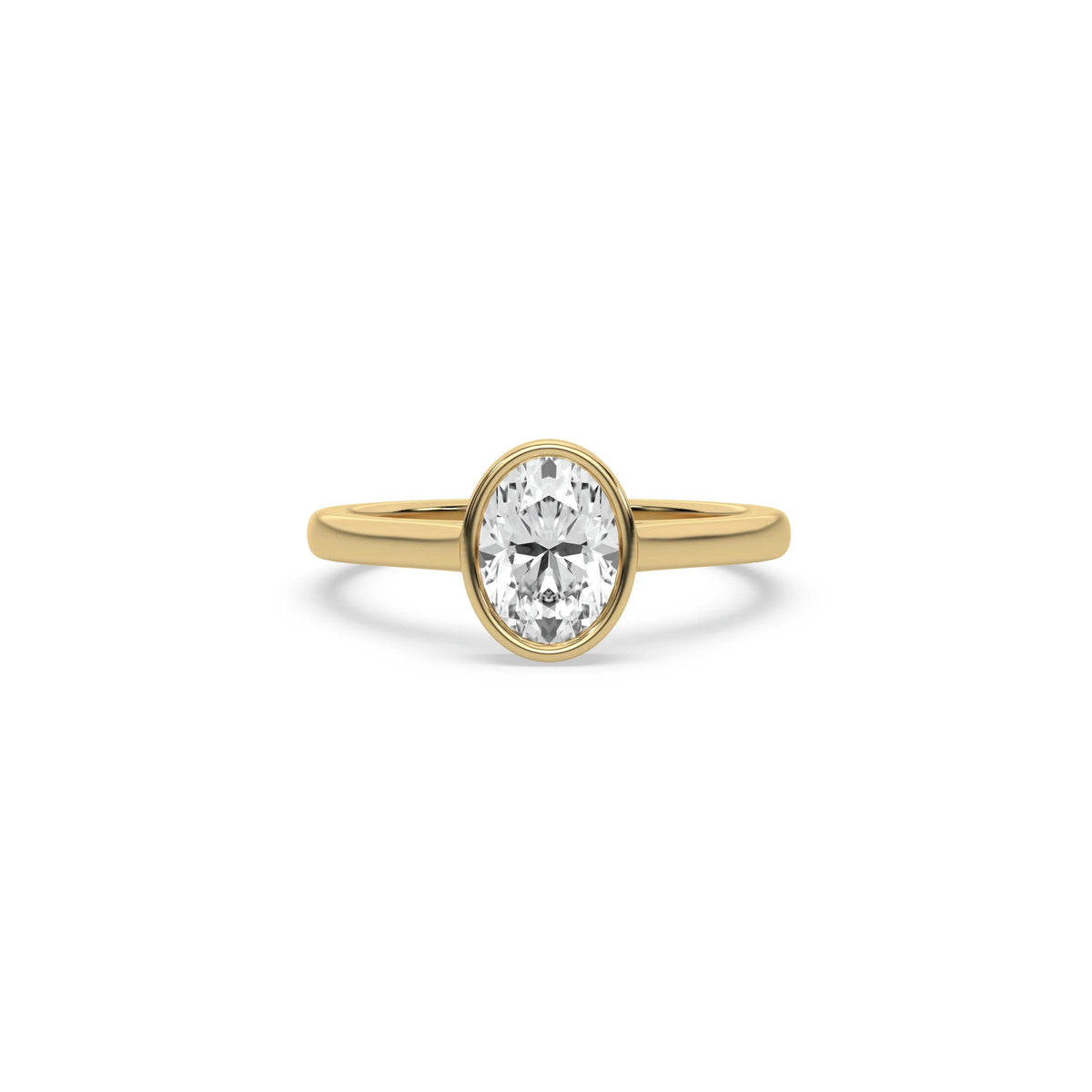 Oval Diamond Bezel Engagement Ring is made with an oval cut diamond set in a bezel setting on a solid gold band.
