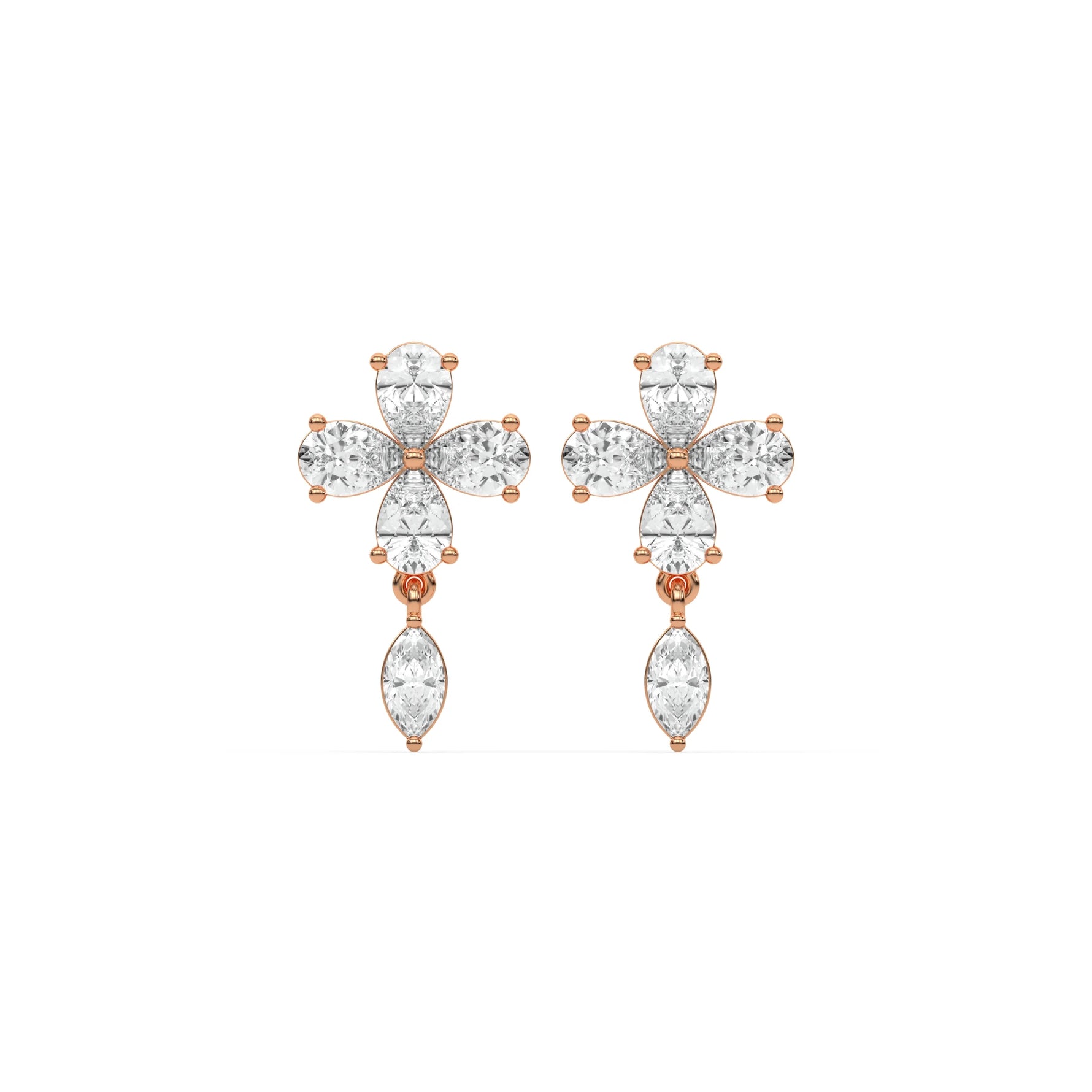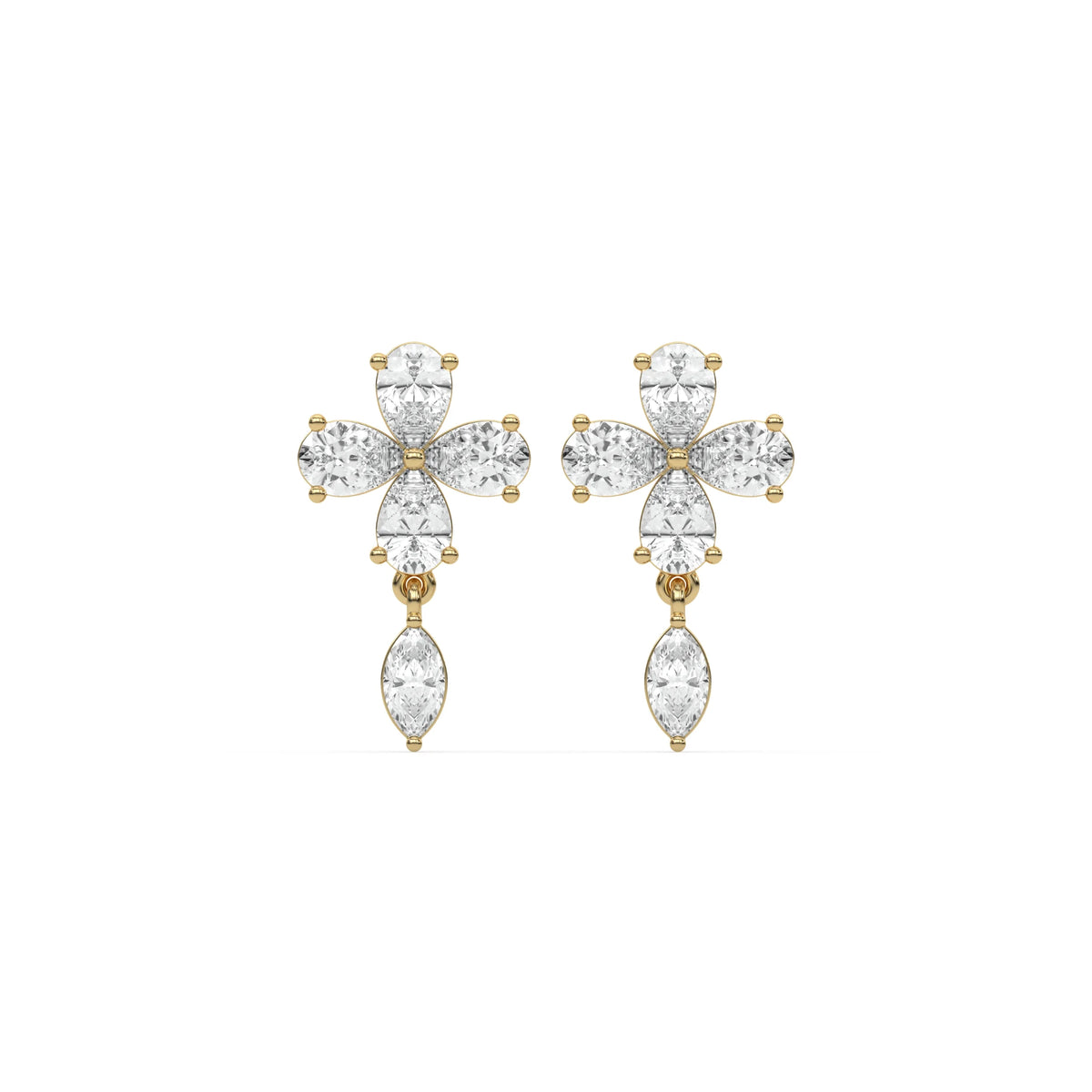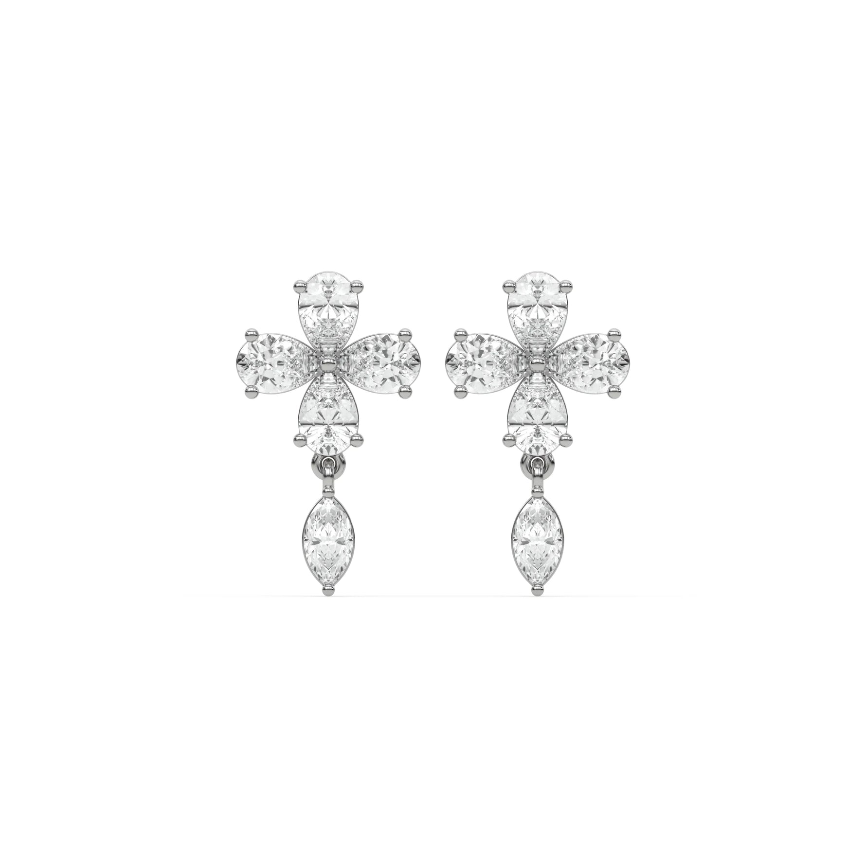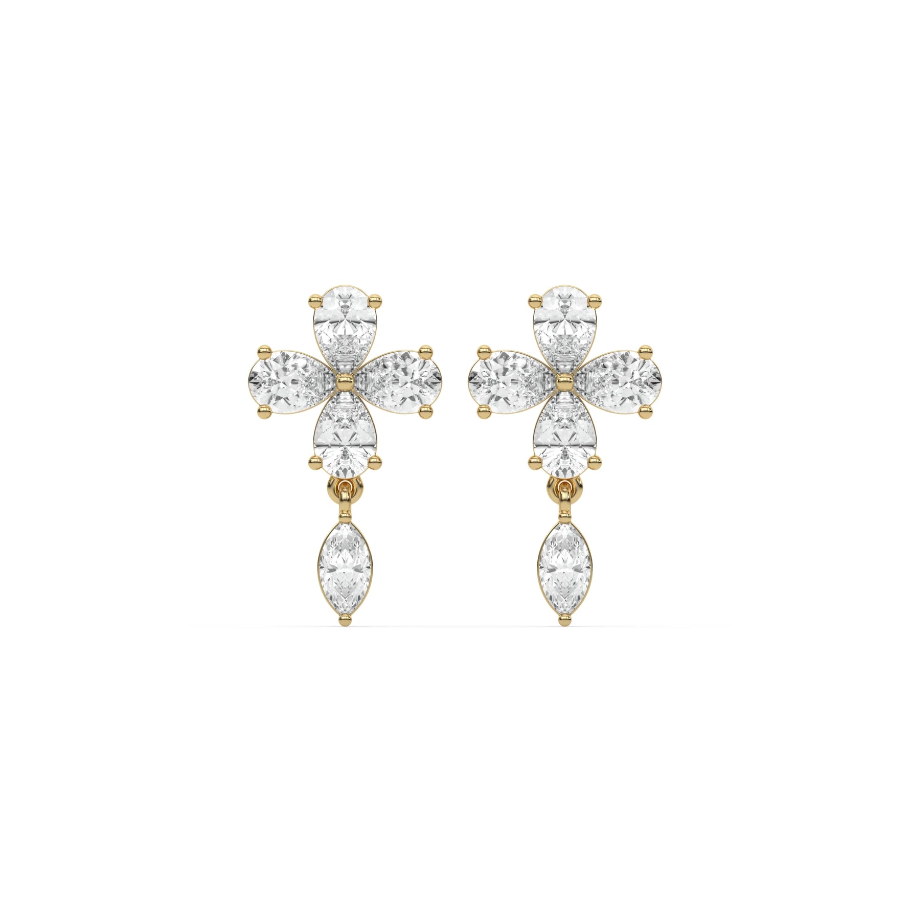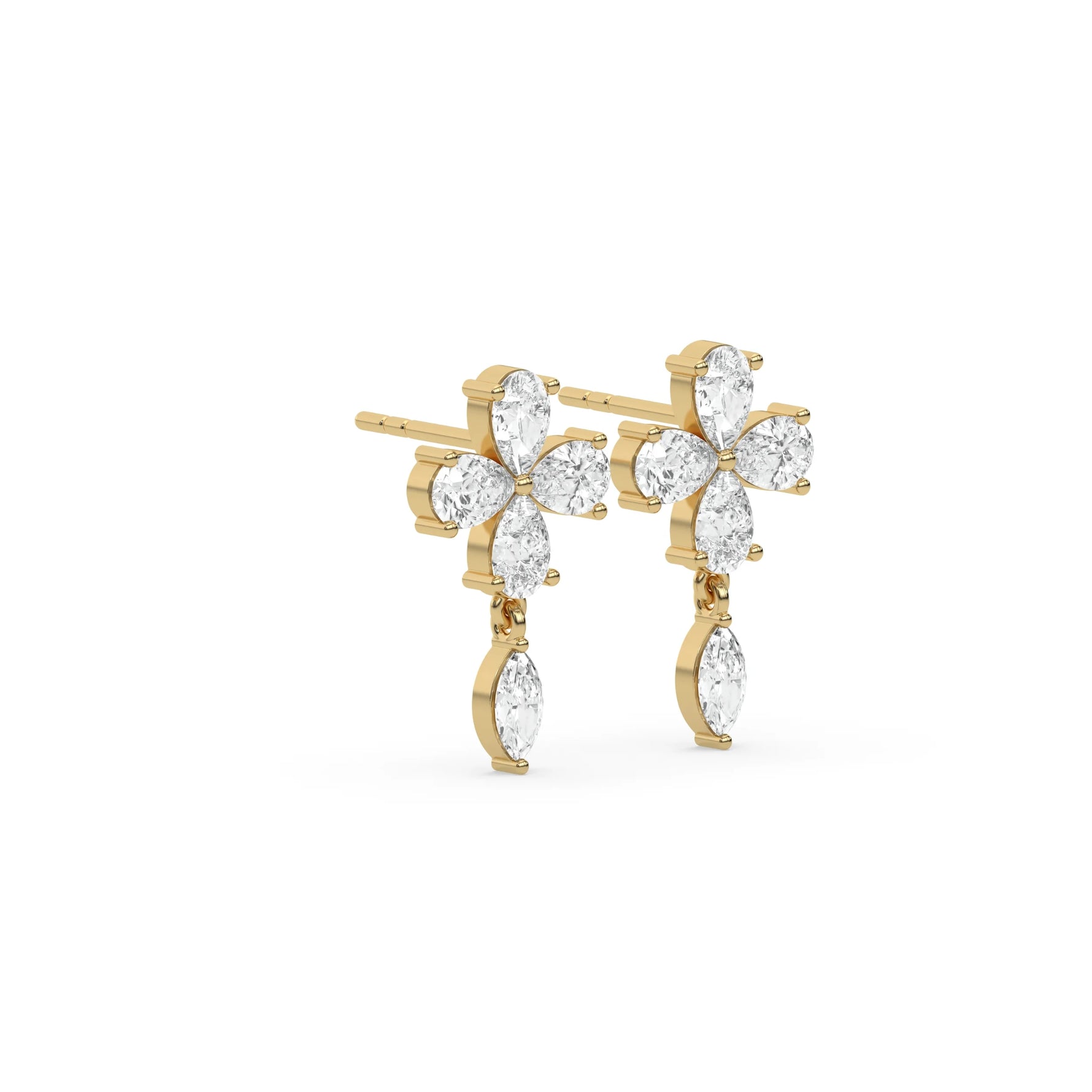 Flower Diamond Dangle Earrings made using pear and marquise diamonds, securely set in prong setting.