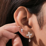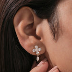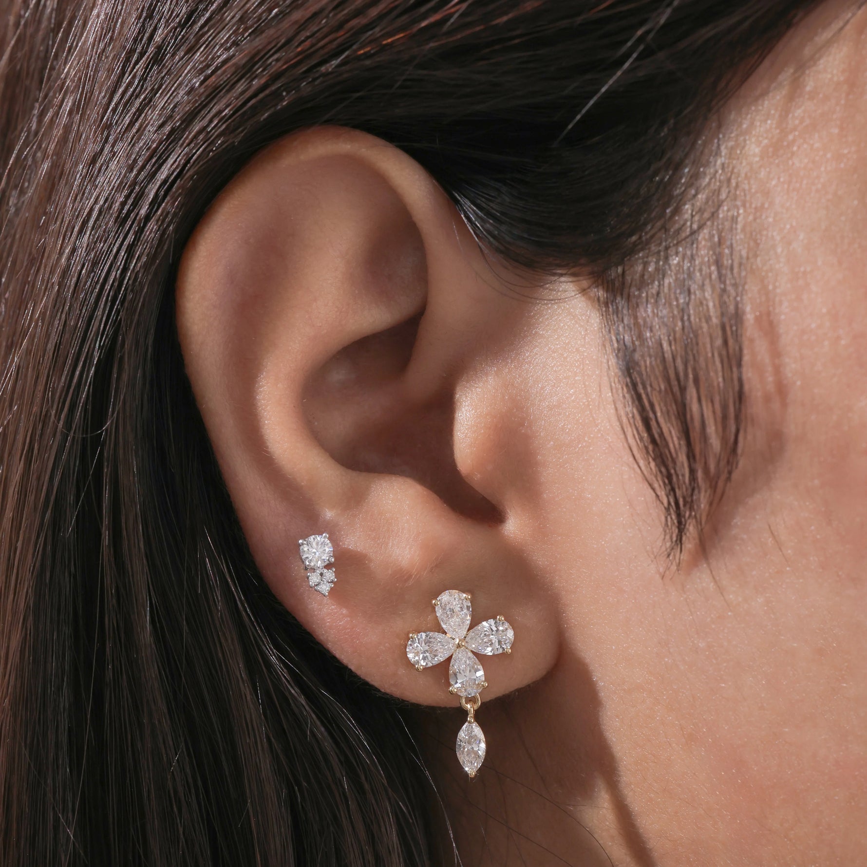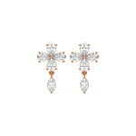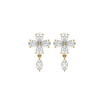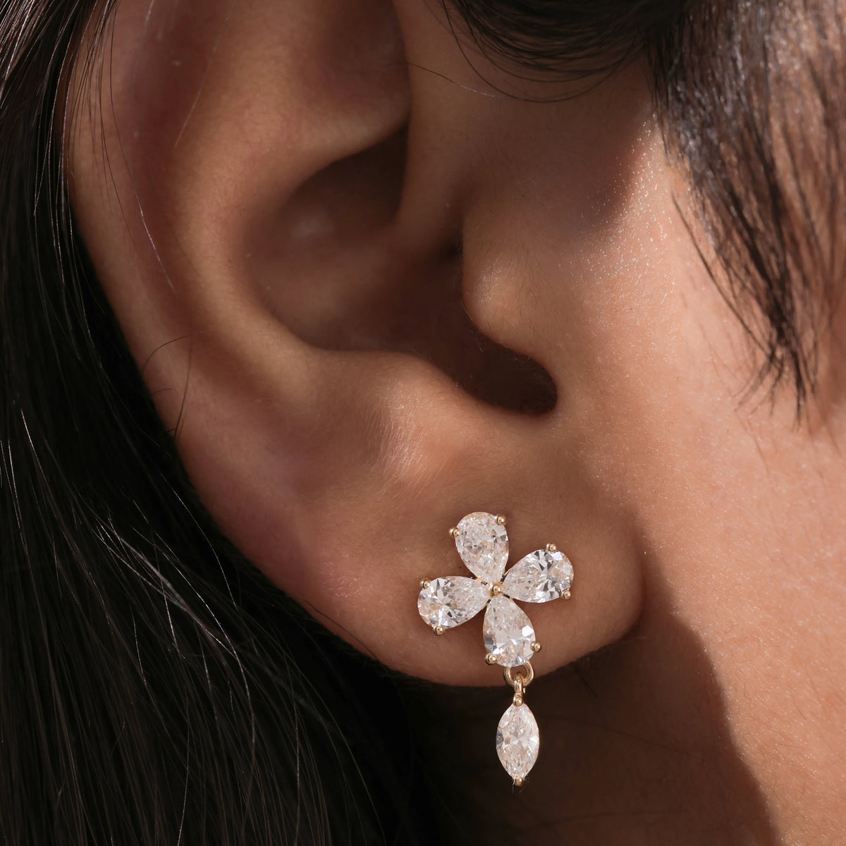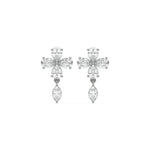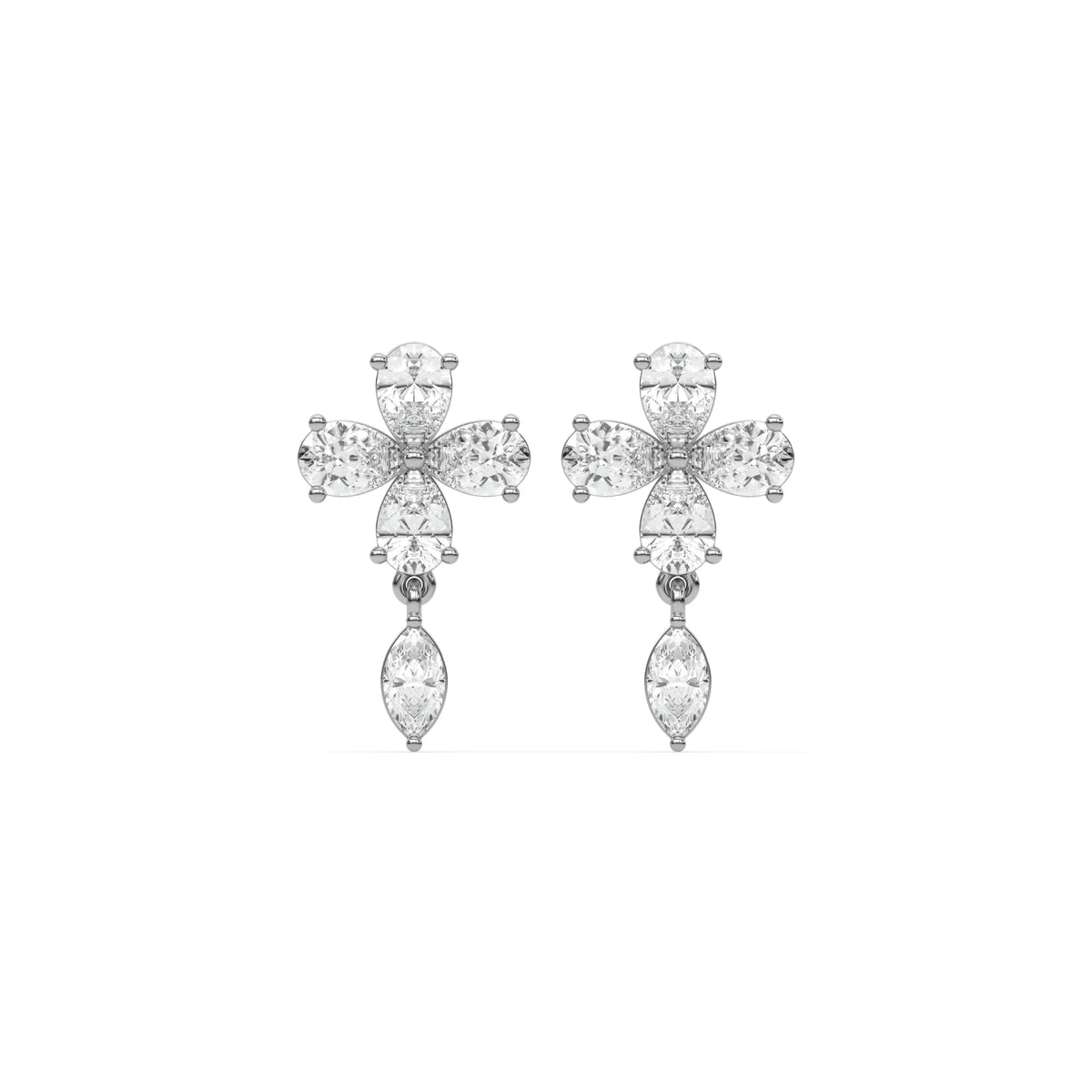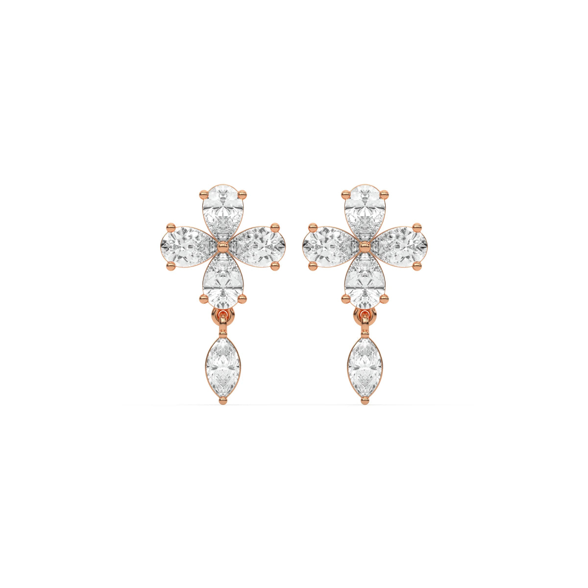 Flower Diamond Dangle Earrings made using pear and marquise diamonds, securely set in prong setting.