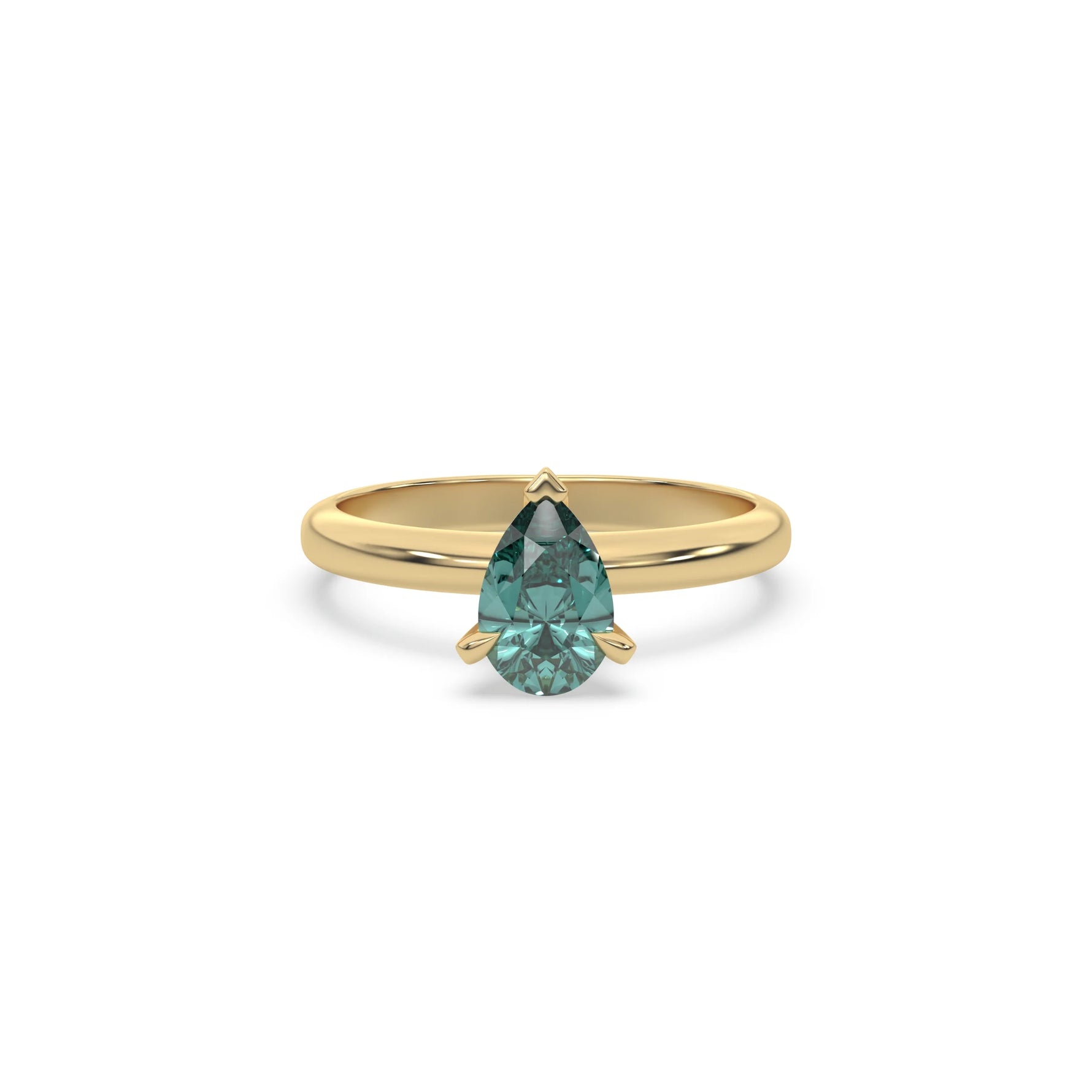 14K Yellow Gold Fancy Green Pear Diamond Solitaire Engagement Ring