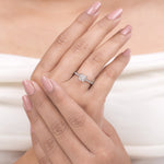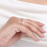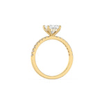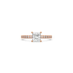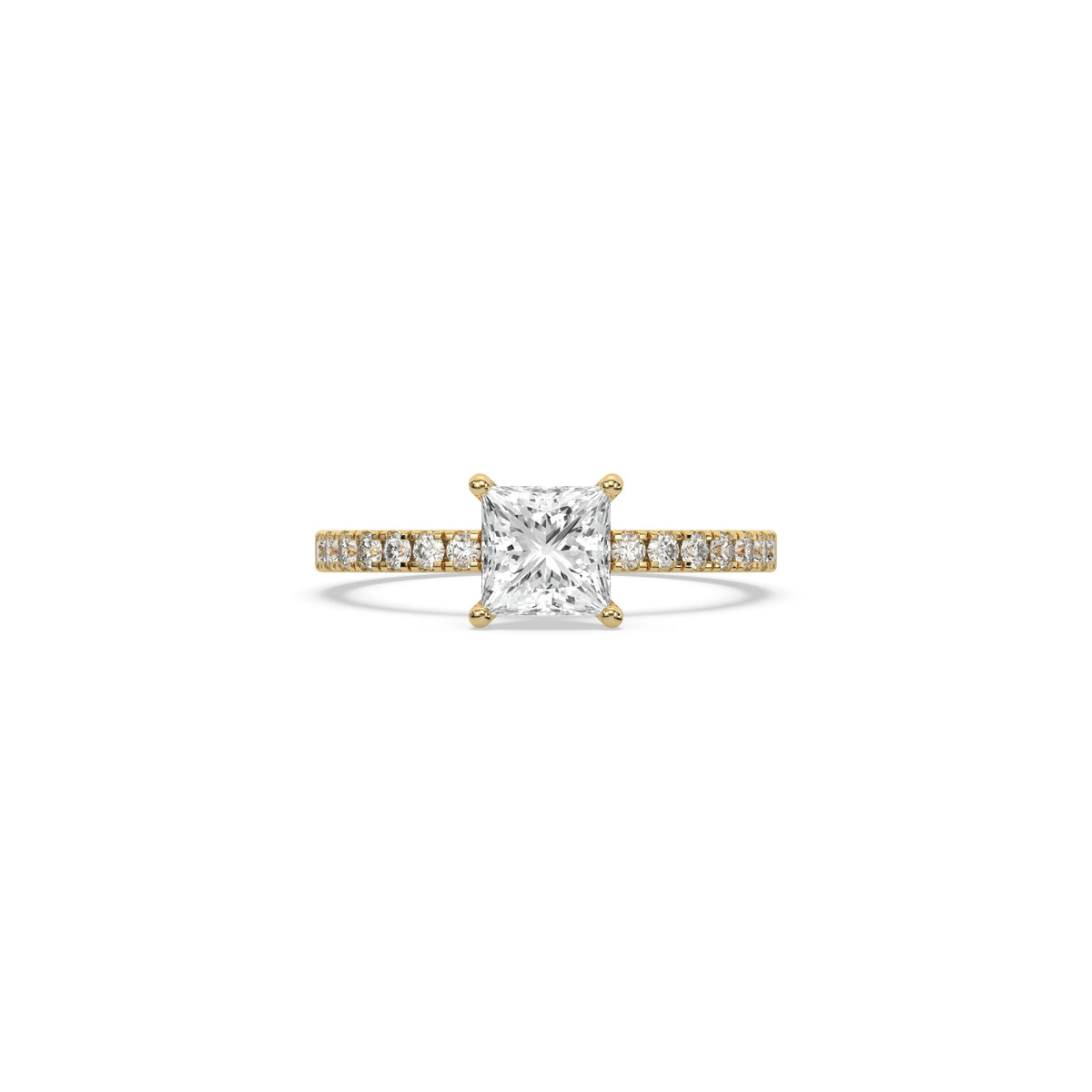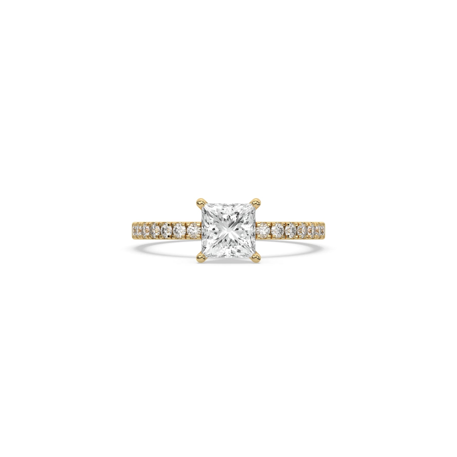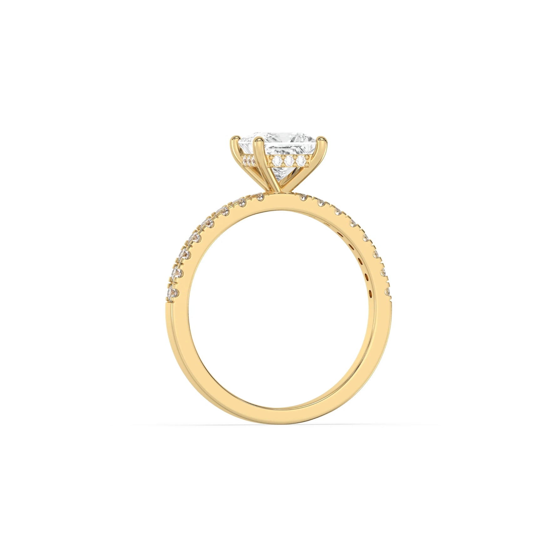 The micro pave diamond band adds extra fire and shimmer, creating a seamless line of brilliance across the finger. This detail-rich craftsmanship ensures that the ring sparkles from every angle, offering a perfect blend of classic design and contemporary beauty. Available in lab grown diamonds, this style is ideal for women seeking a sustainable yet luxurious choice. Whether worn as an heirloom-worthy piece or as a solitaire engagement ring with a unique twist, this ring represents everlasting love and refined style.