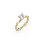 Elevate your love story with the brilliance of our Princess Cut Halo Engagement Rings, designed for women who want timeless elegance with a modern touch. At its center, a striking princess cut diamond is set in a secure four-prong setting, known for its sharp edges and exceptional sparkle. The design is elevated by a hidden halo of round diamonds placed delicately beneath the crown—making this piece as unique as any found in the world of fine halo engagement rings.