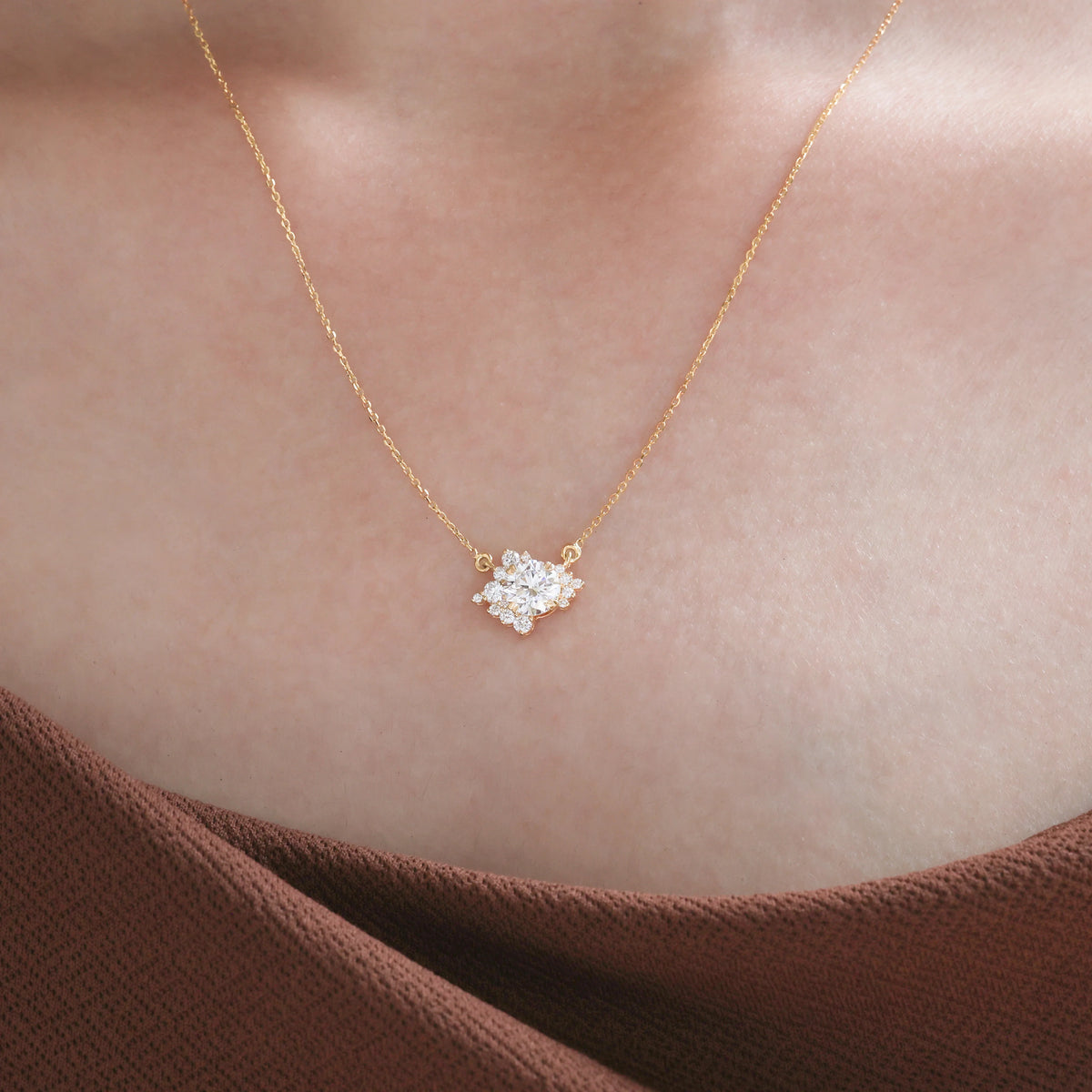 1.28 CT Natural Diamond Round Cluster Necklace