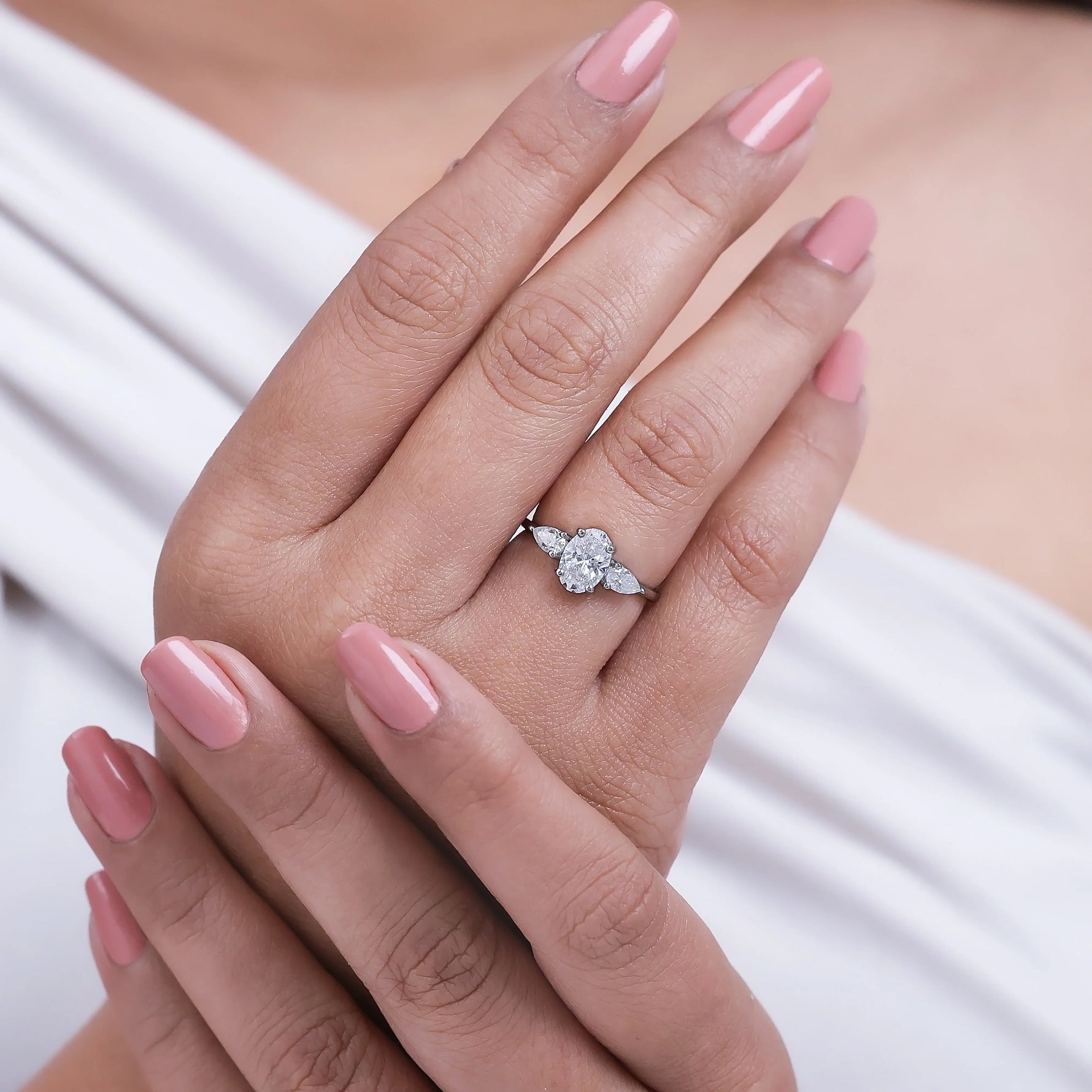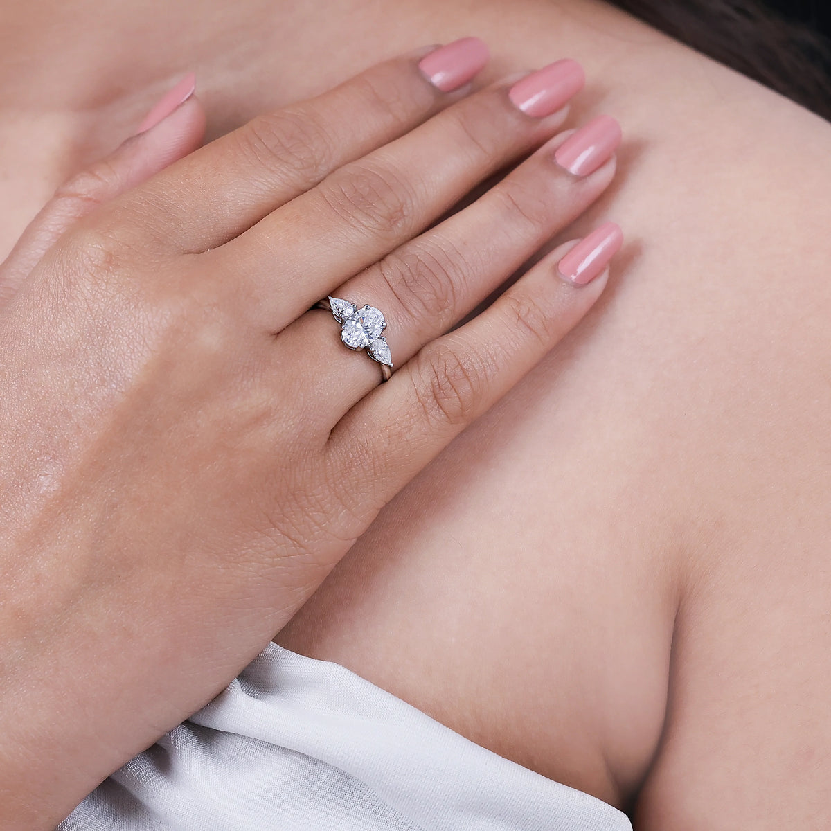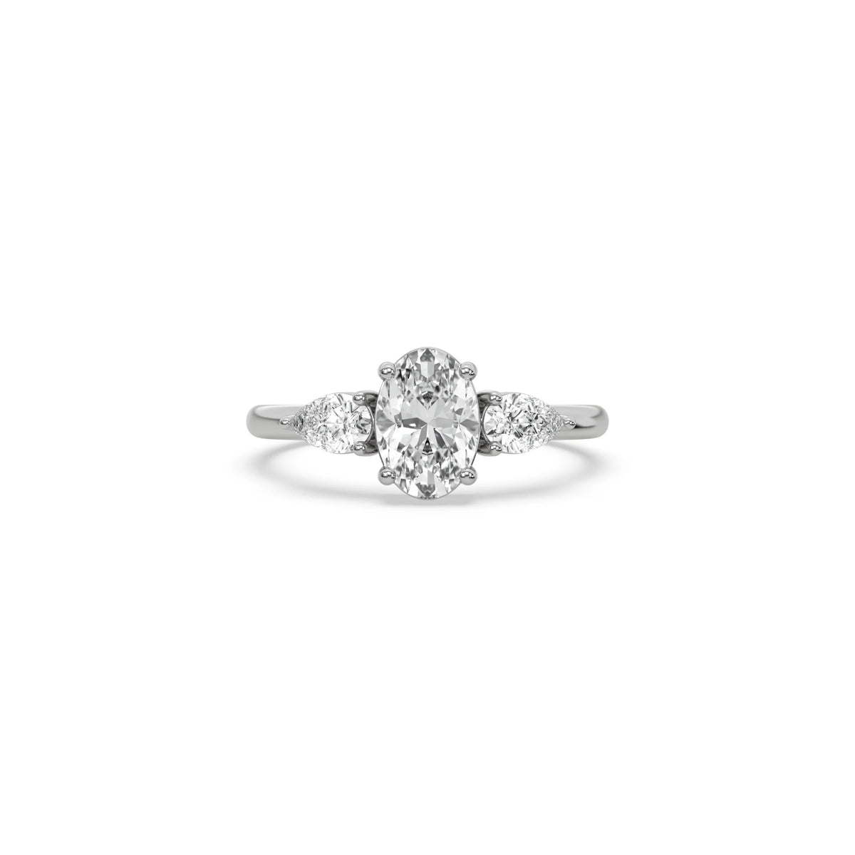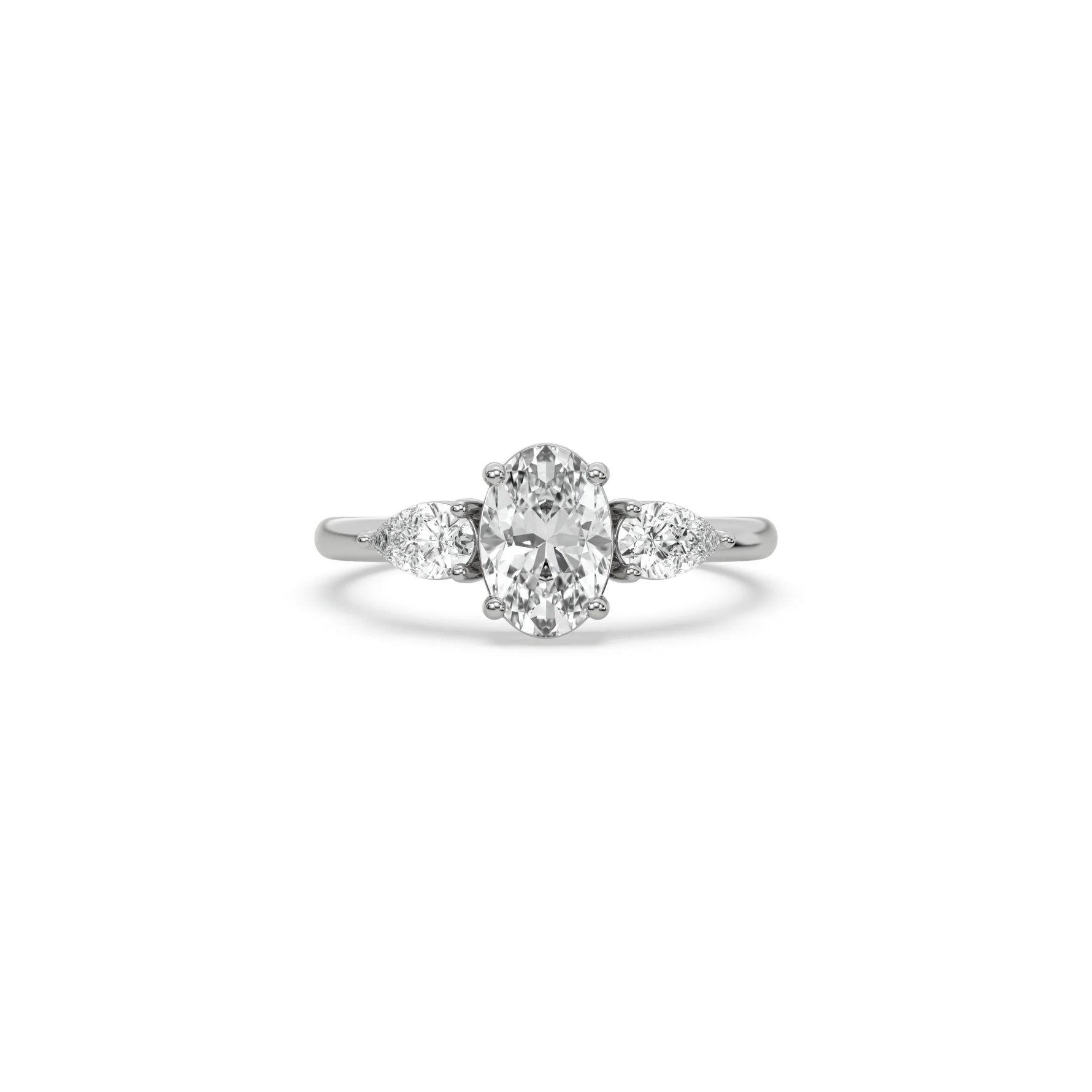Timeless, elegant, and full of meaning, our Oval Engagement Rings are designed for women who appreciate both brilliance and balance. This lab grown diamond ring features a graceful oval cut center stone, set securely in four prongs. On either side, two pear-shaped diamonds add symmetry and sparkle, creating a classic look that makes this ring a beautiful choice for a proposal or as a refined 3 stone engagement ring.