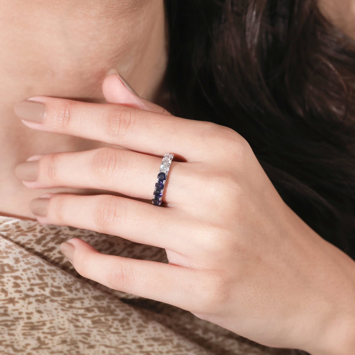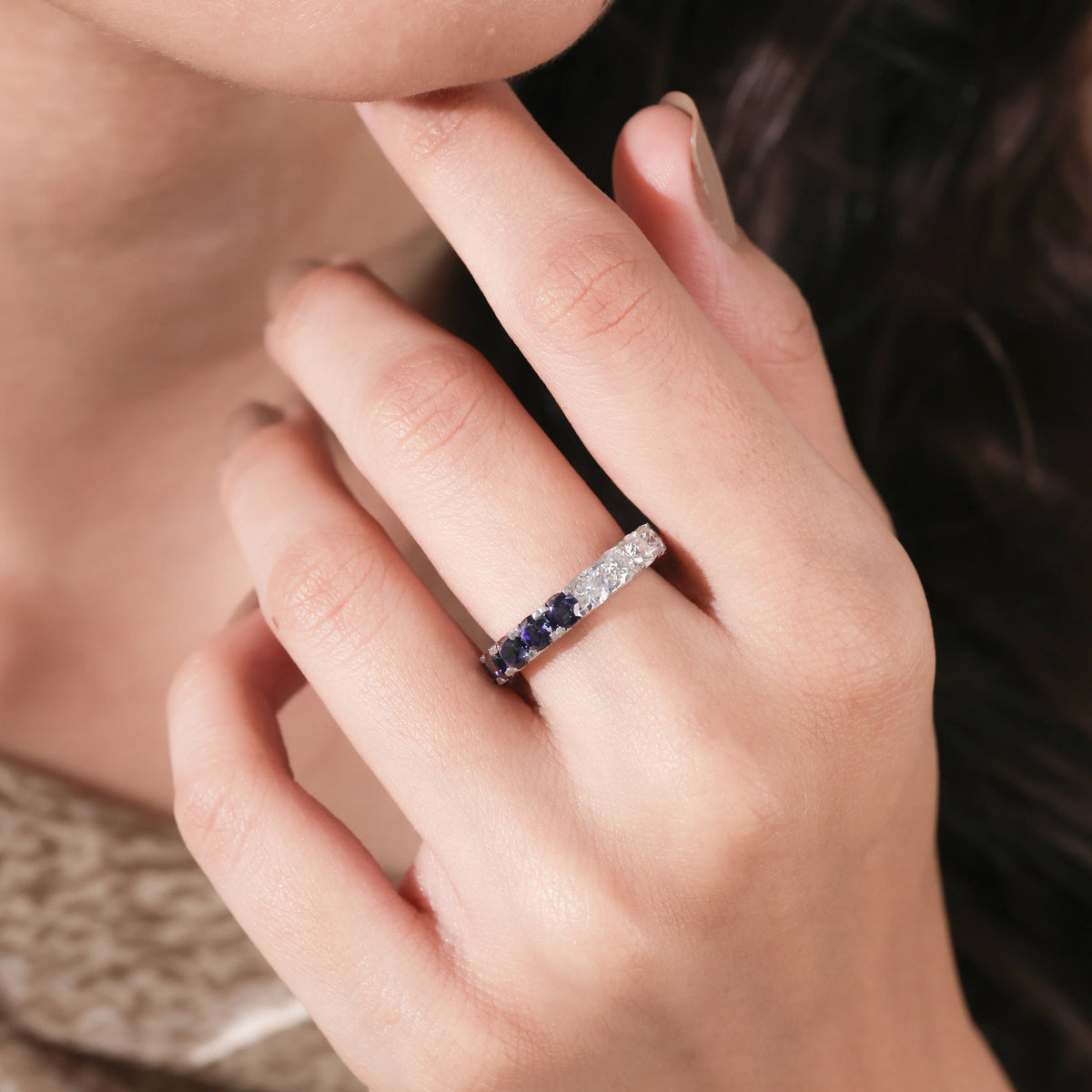 3.5 MM Round Shape Lab Grown Diamond & Lab Created Sapphire Eternity Band