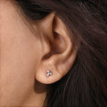 Trio Diamond Earrings made using two round brilliant-cut diamonds and a pear diamond, securely set in prong setting.