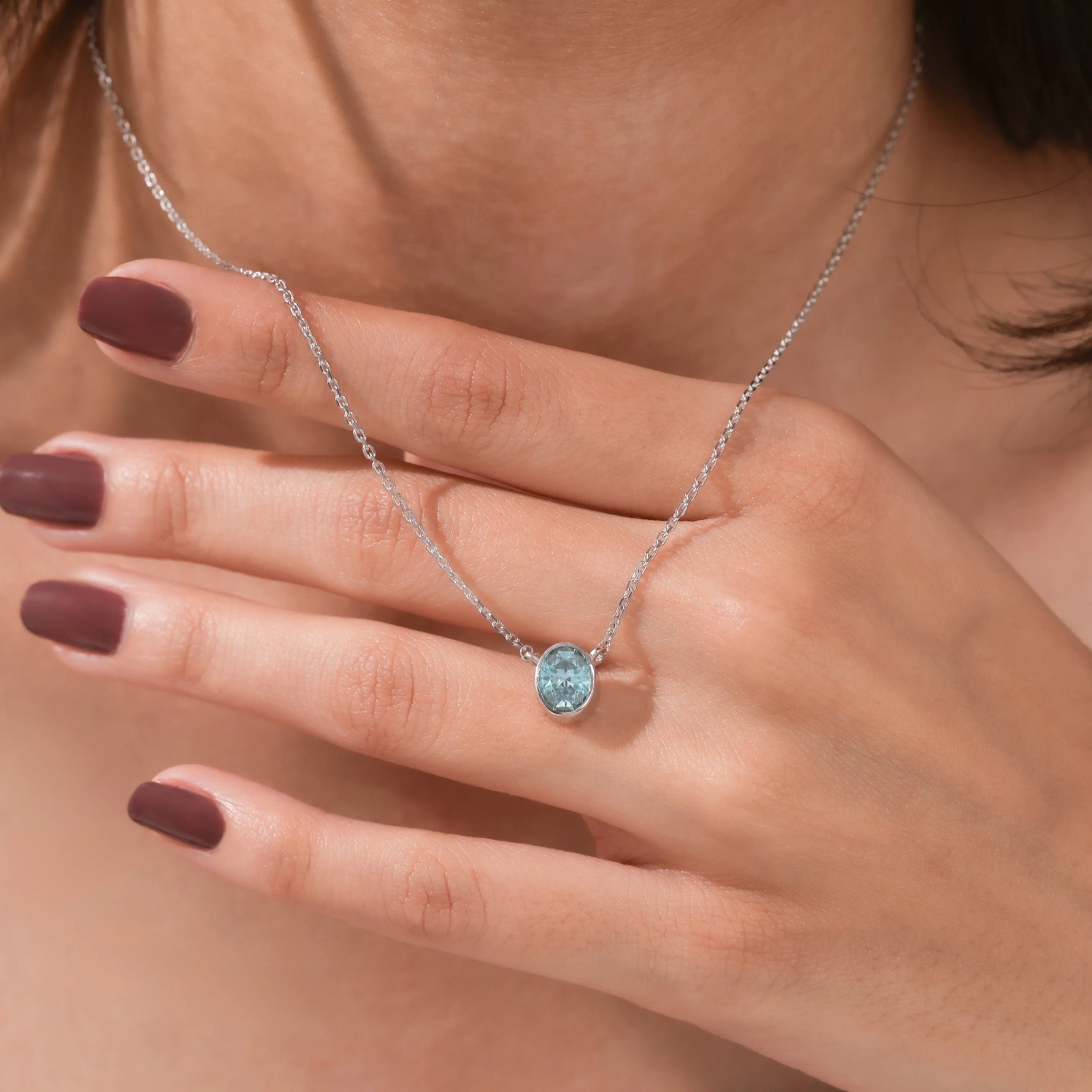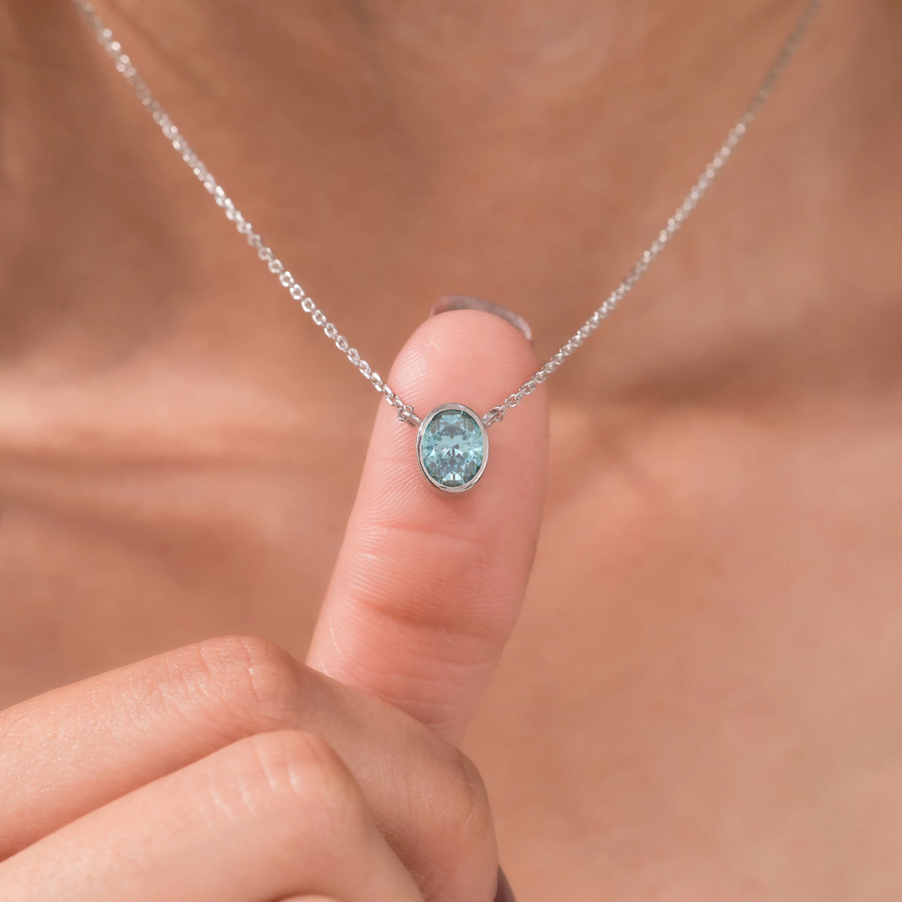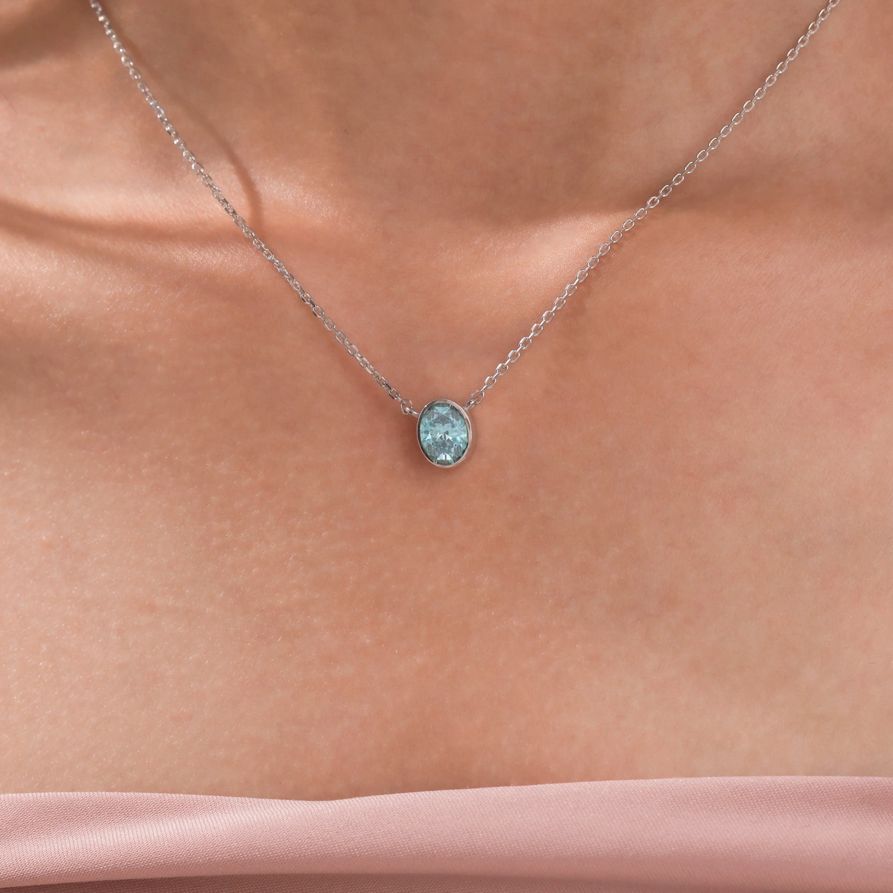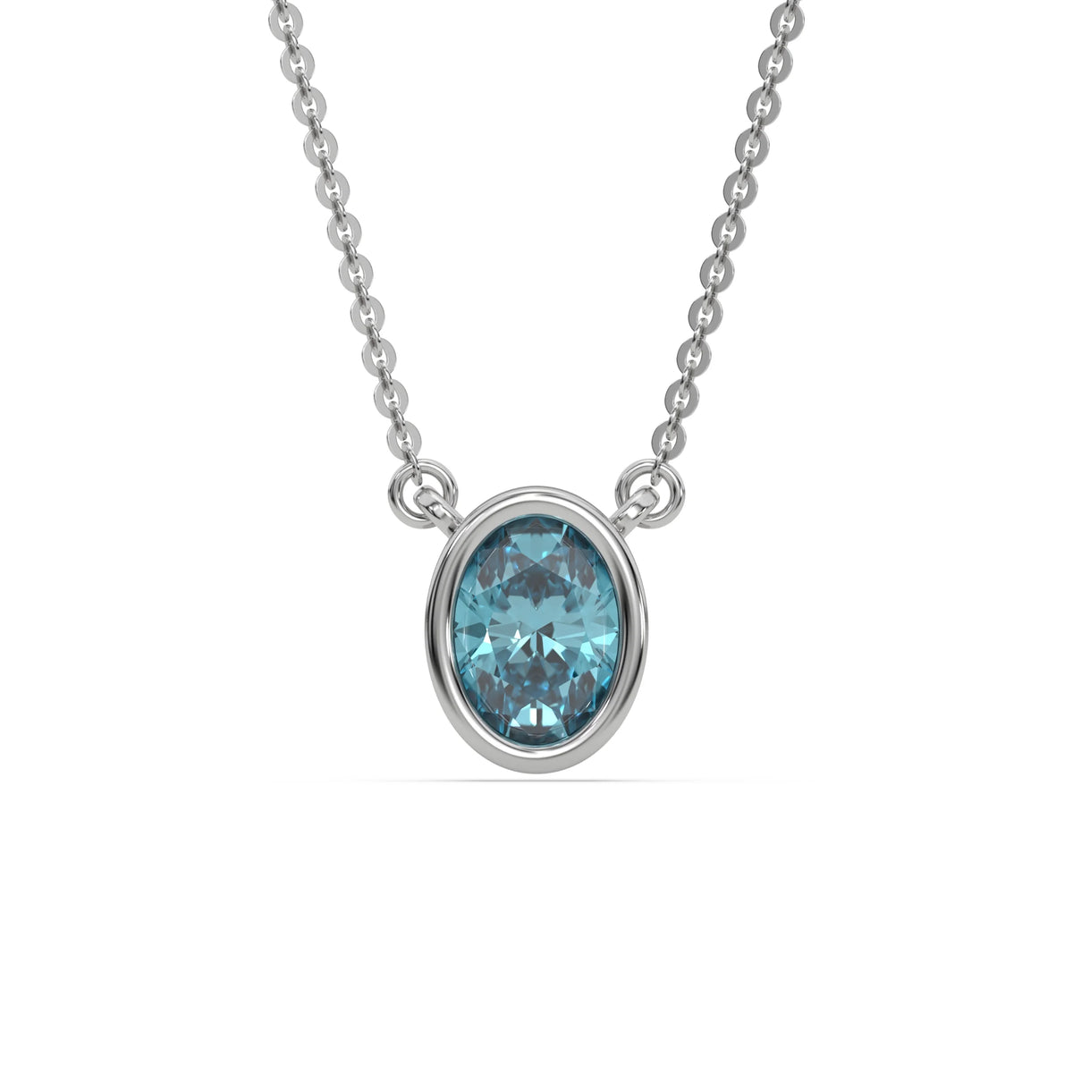 Fancy Blue Oval Solitaire Diamond Necklace made with an fancy Blue oval cut diamond in bezel setting with adjustable chain.