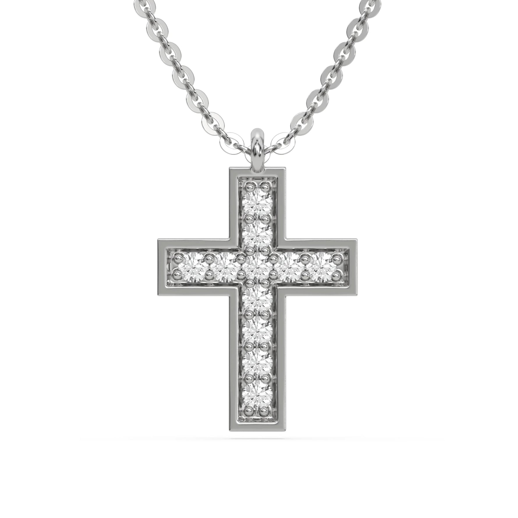 Cross Diamond Necklace made with round brilliant-cut diamonds, securely set in pave setting.