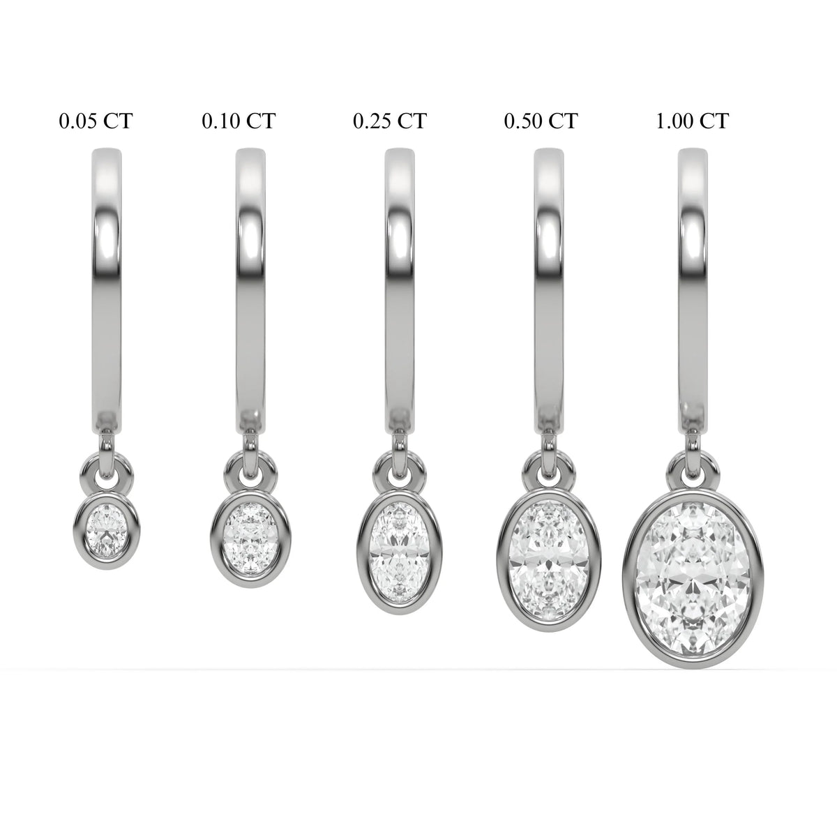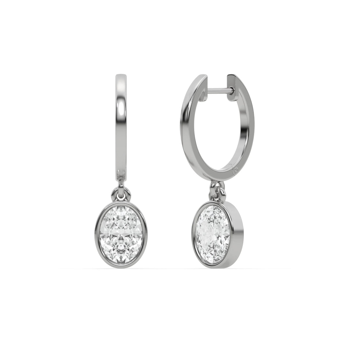14k white gold natural oval cut diamond dangling hoop earrings in bezel setting