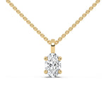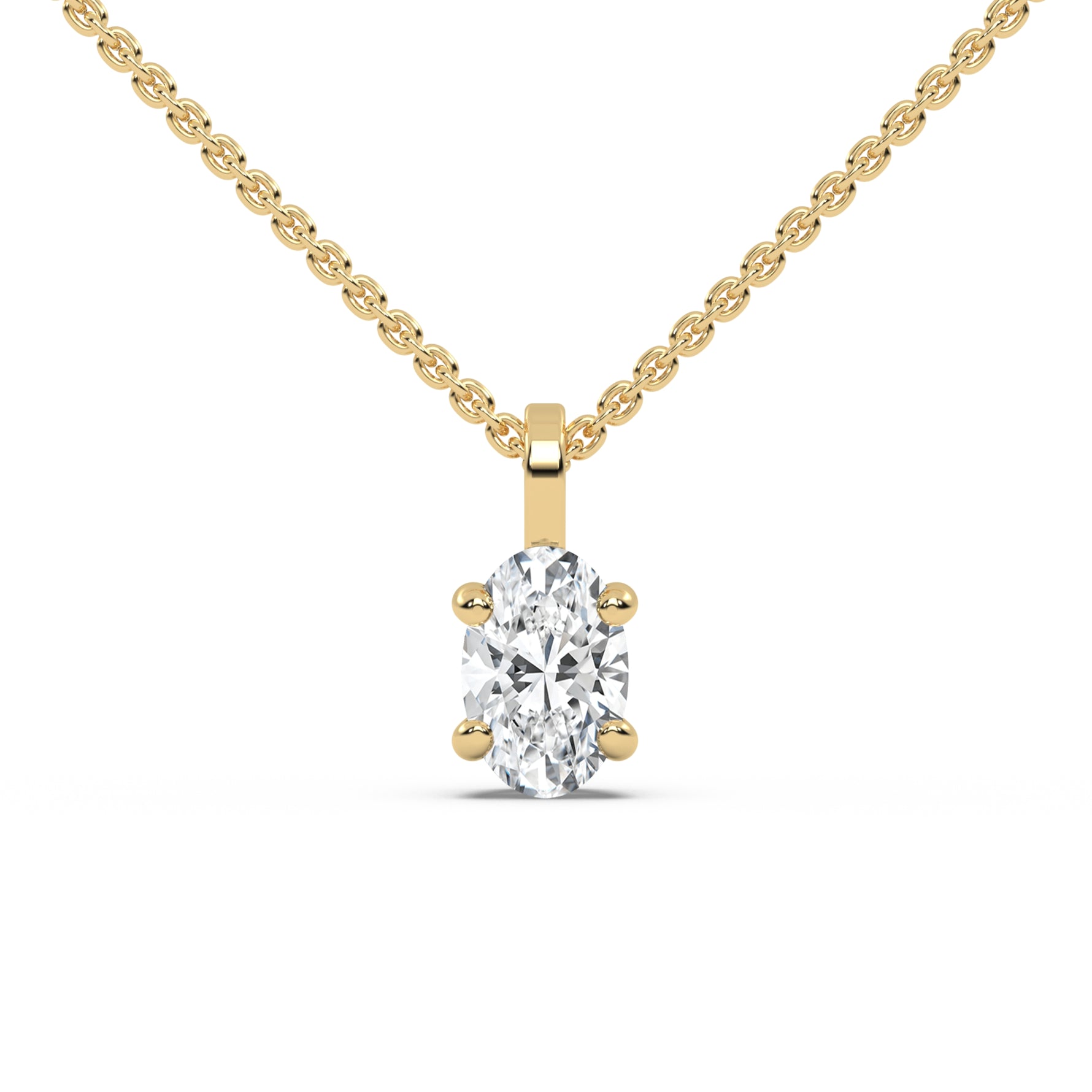 A solitaire necklace featuring an oval diamond securely set in four prongs for a simple yet stunning look.