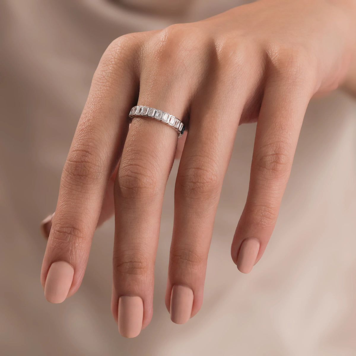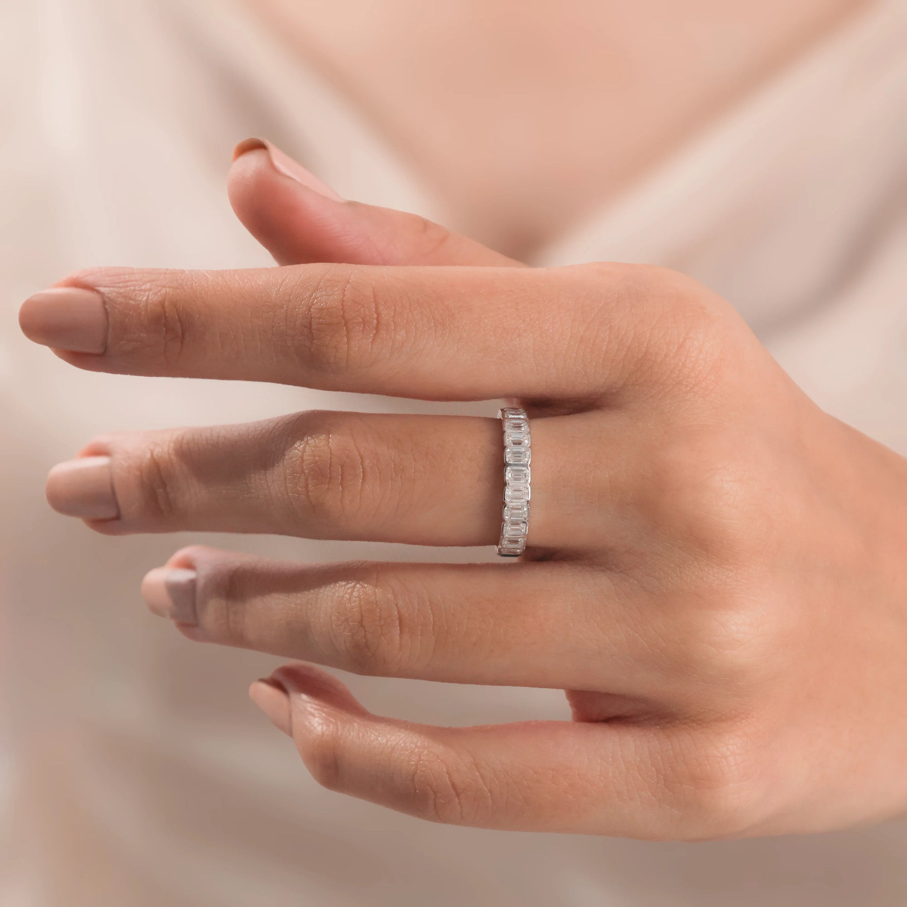 2.40 CT Emerald cut Lab Grown Diamond Bezel Full Eternity Ring