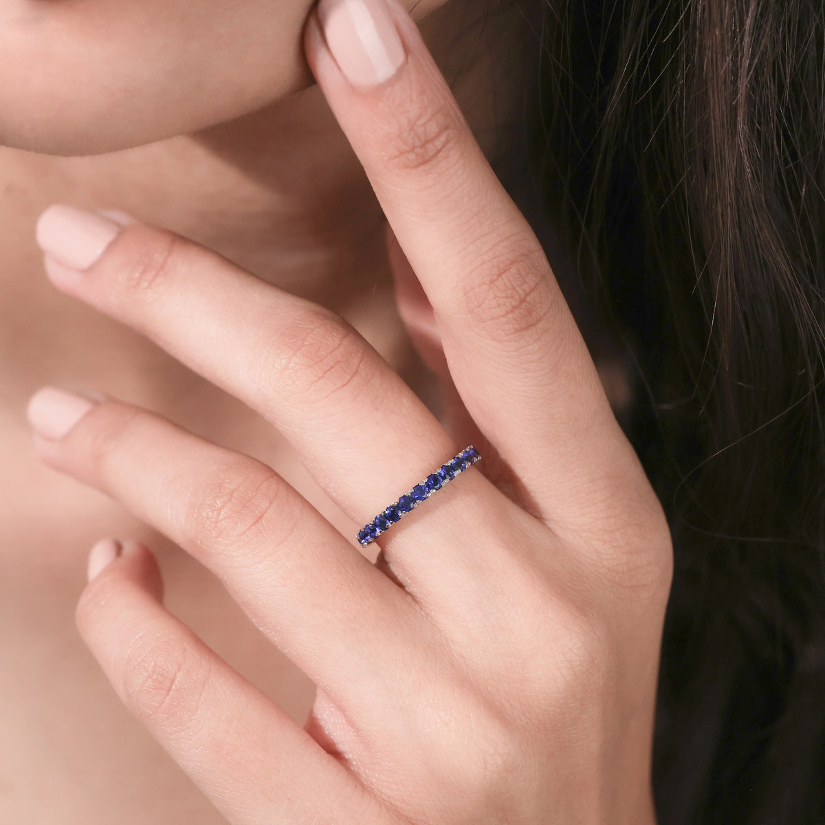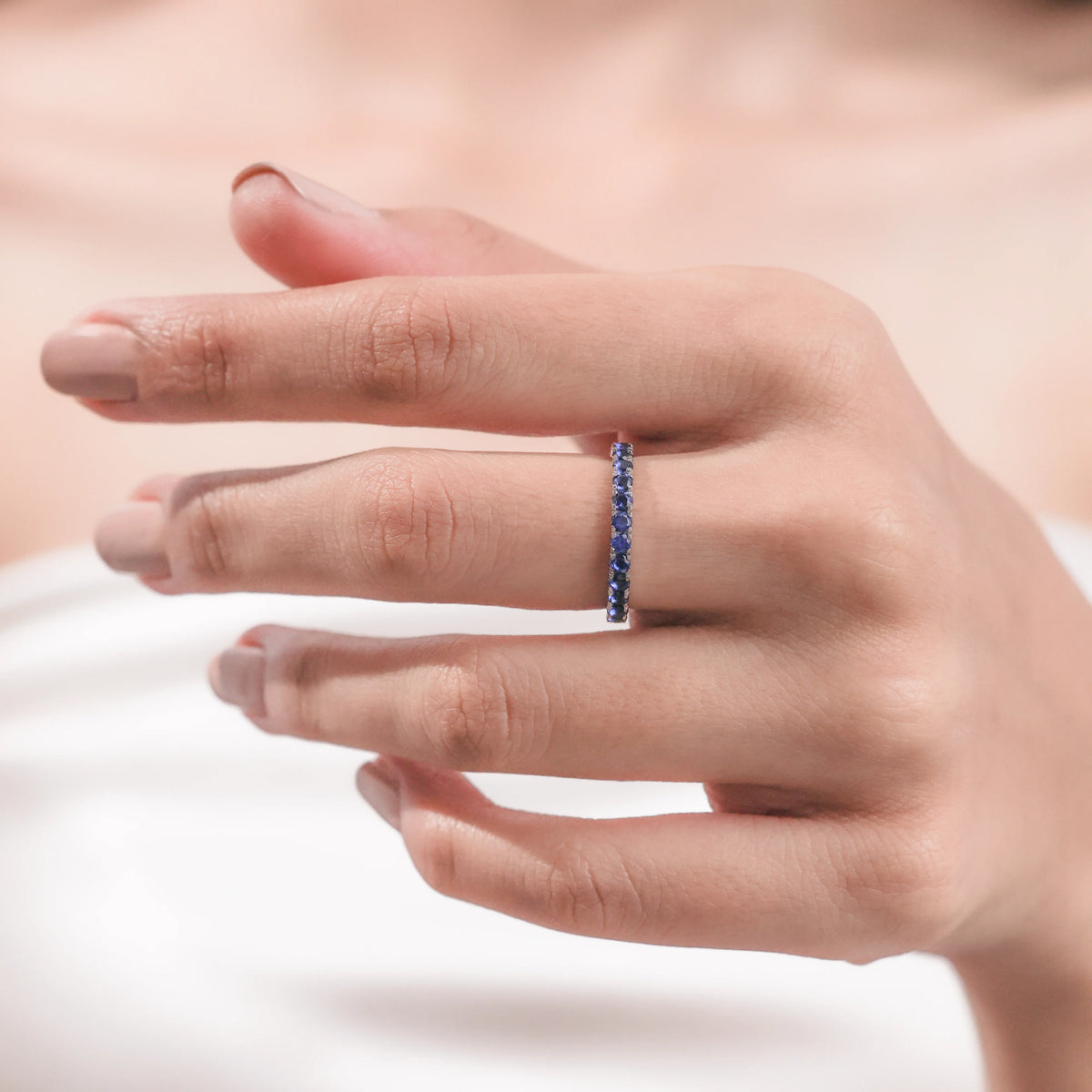 Round Cut Natural Sapphire Eternity Ring