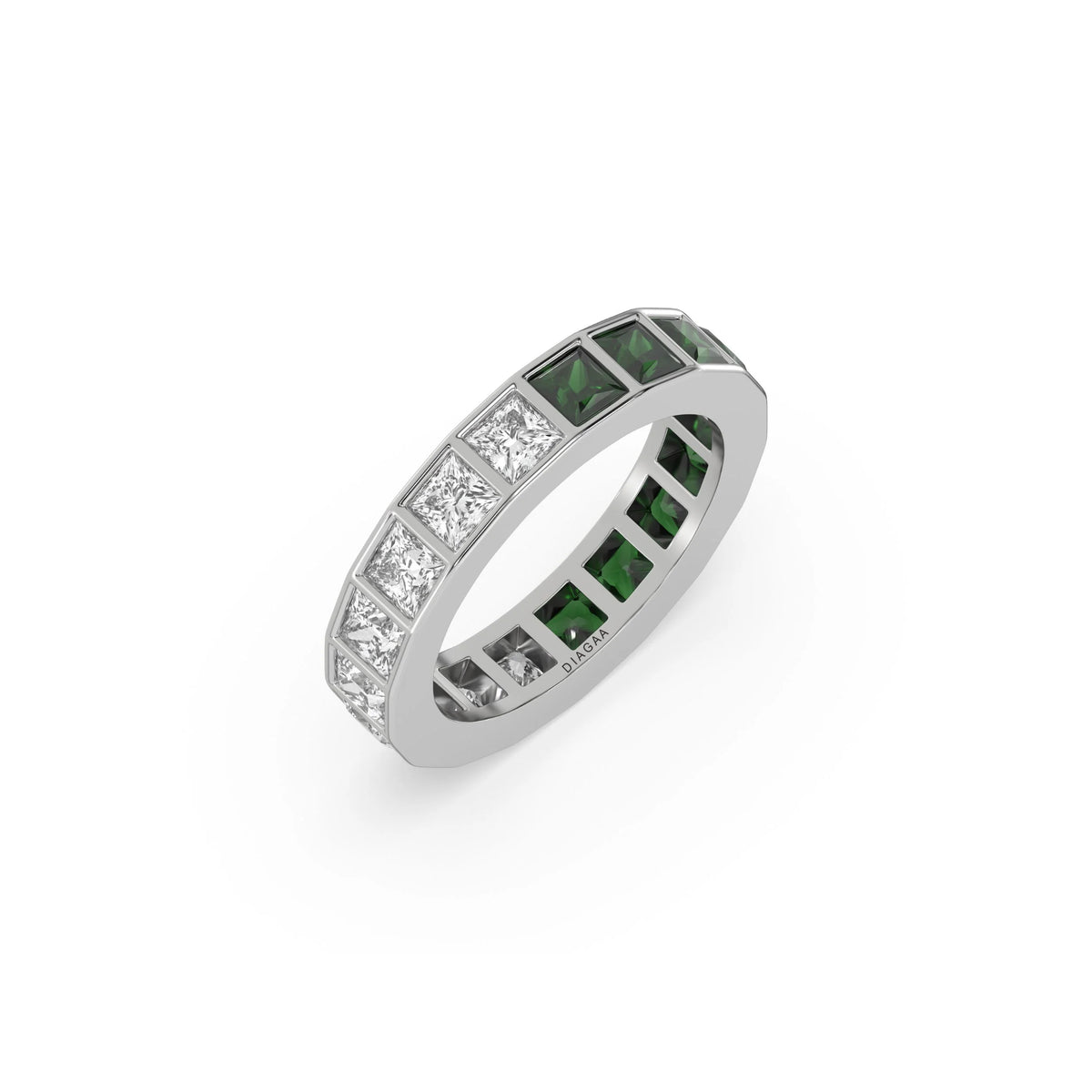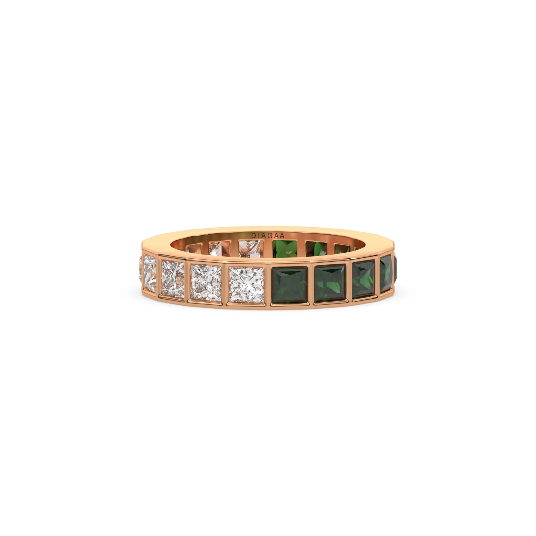 3.42 CT Princess Half Lab Diamond and Half Lab Emerald Bezel Full Eternity Ring