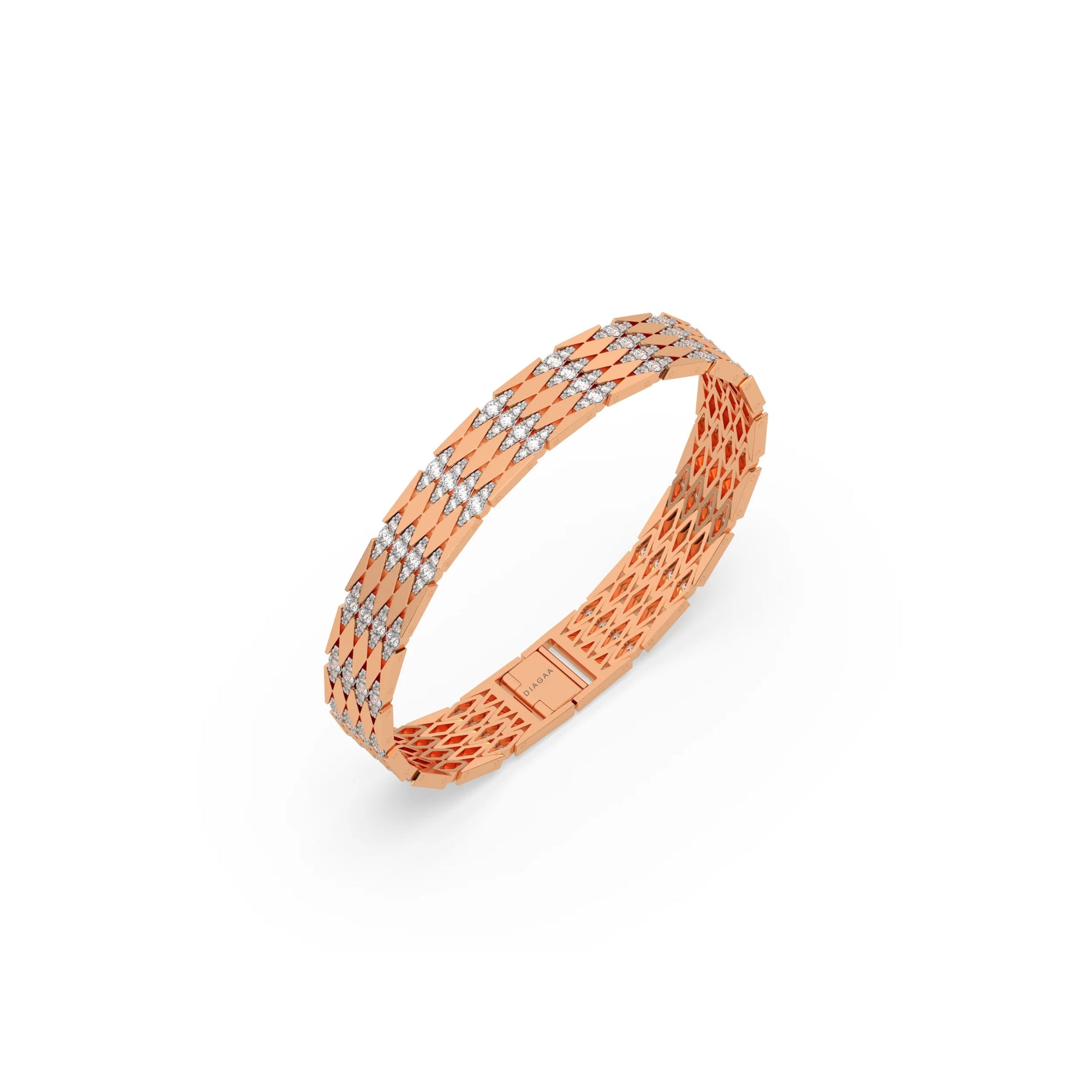 Diamond link bracelet features 4.35 CT of round cut diamonds set in a prong setting. Customize your bracelet by choosing your preferred choice of gold type, available in either 14K or 18K gold.
