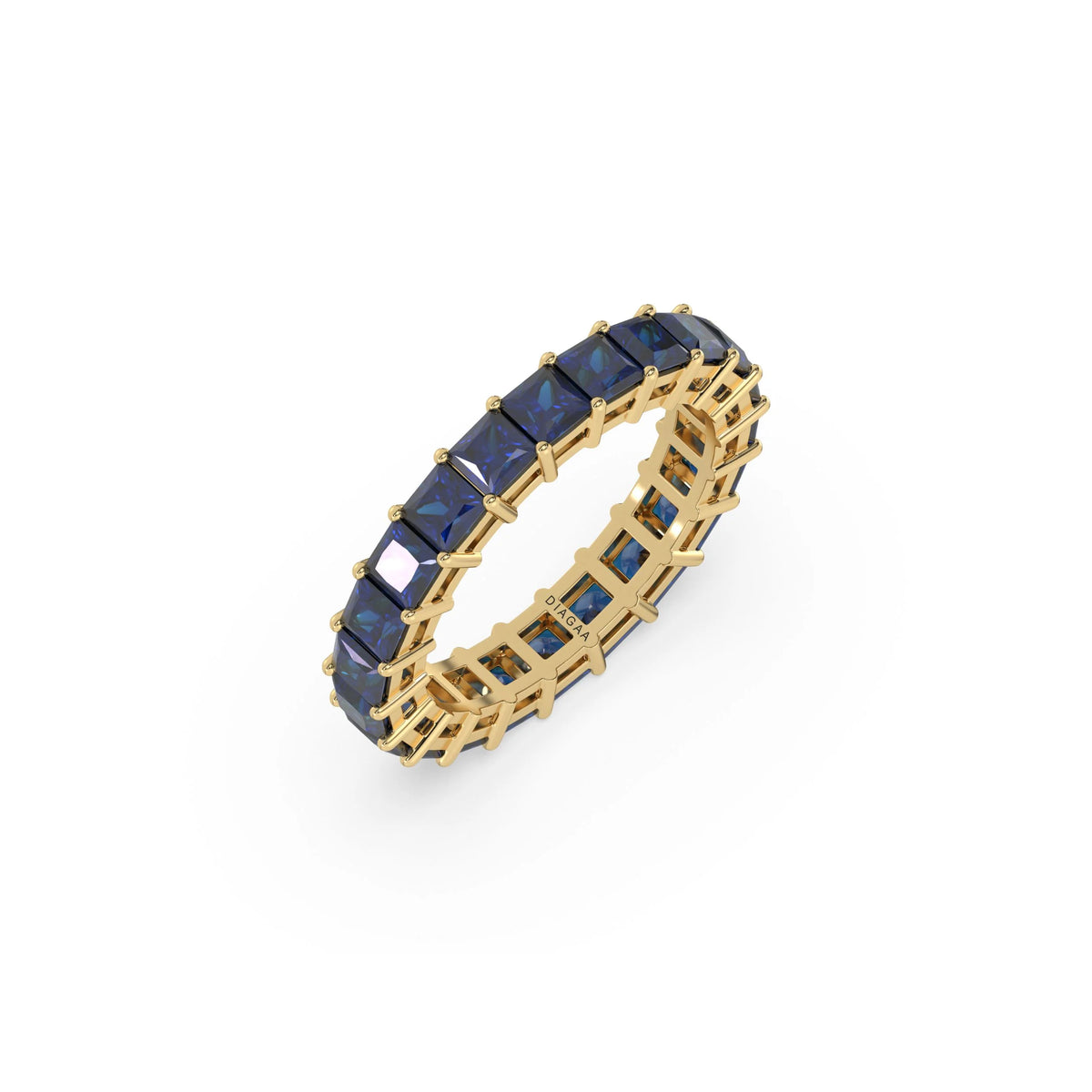 14K Yellow Gold Princess Sapphire Gemstone Eternity Ring