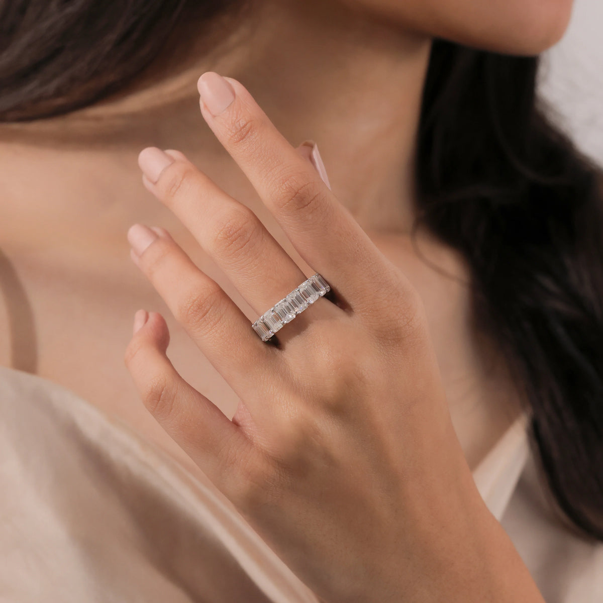 6.60 CT Emerald cut Lab Grown Diamond Full Eternity Ring